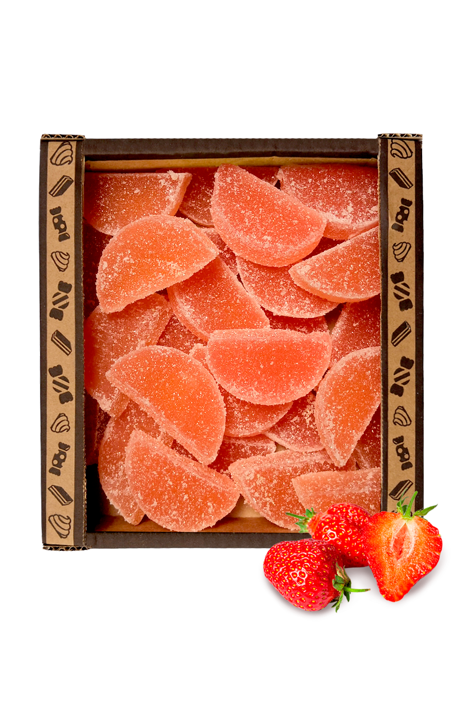 | Состав | Сахар, патока крахмальная, желирующий агент- пектин, регулятор кислотности - кислота лимонная , консервант пищевой - цитрат натрия, ароматизатор пищевой , краситель натуральный: " Фрутоккол розовый". |