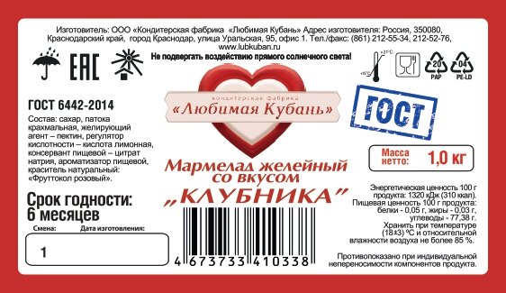 Мармелад желейный со вкусом Клубника 1 кг Любимая Кубань ГОСТ интересное: