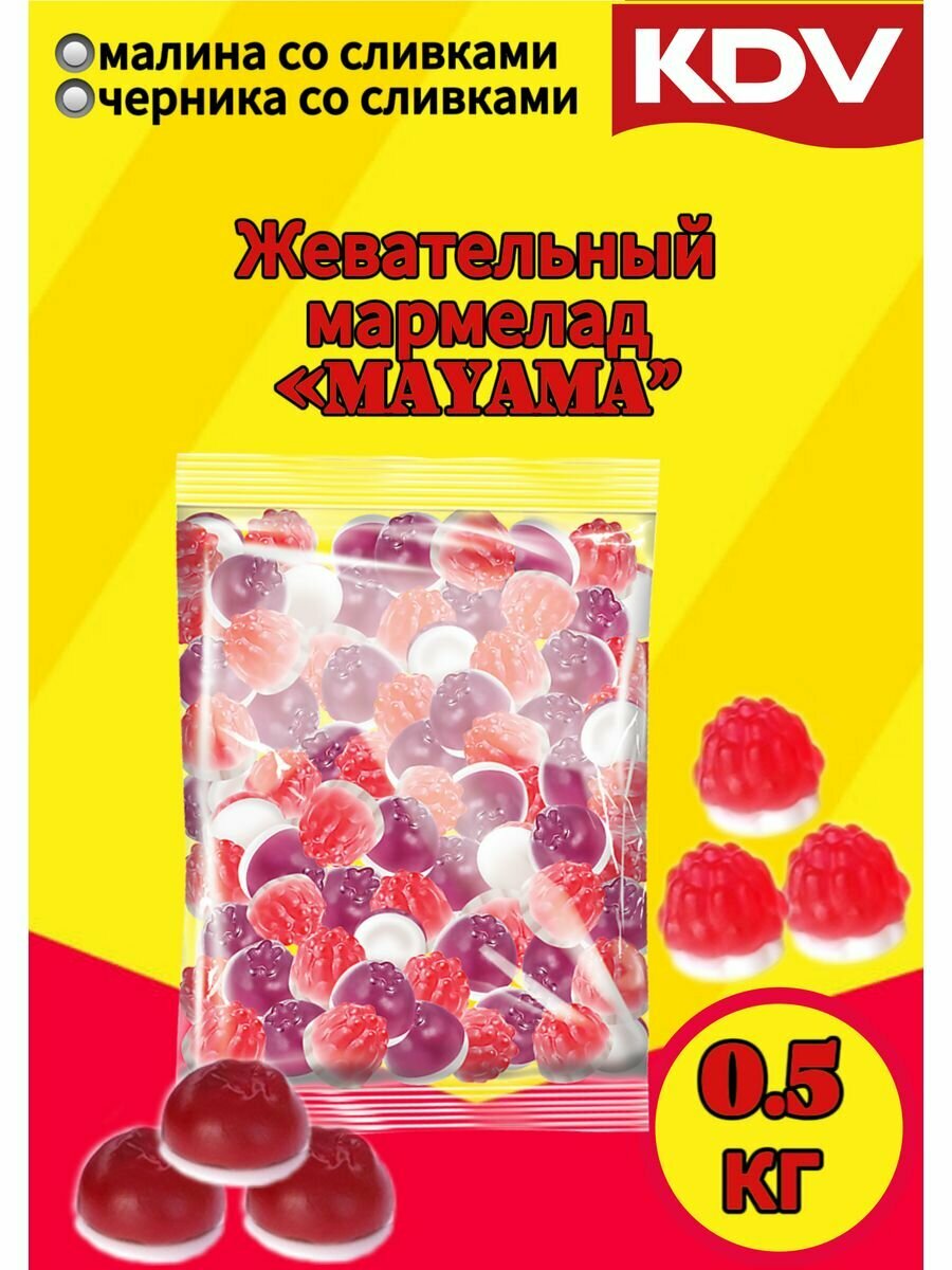 «Маяма», мармелад жевательный с желейной начинкой со вкусом черники и малины со сливками (упаковка 0,5 кг)