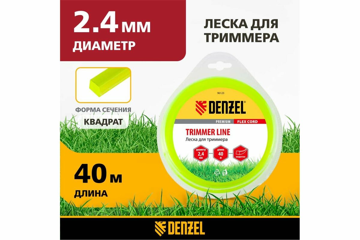 Купить Леска для триммера, квадрат 2.4 мм х 40 м, блистер Flex cord Denzel