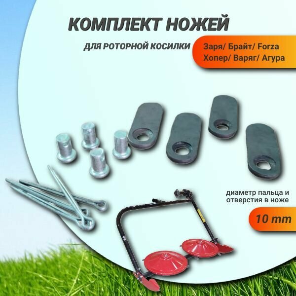 | Комплектация | Комплект ножей для роторной косилки 4 пальца, 4 ножа, 4 шайбы, 4 шплинта |