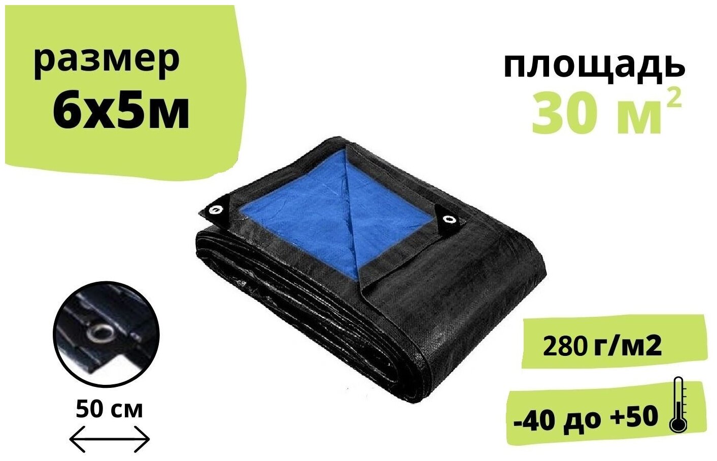 Купить Тент 5х6 м с люверсами плотность 280г/м2, укрывной, туристический, защитный, строительный