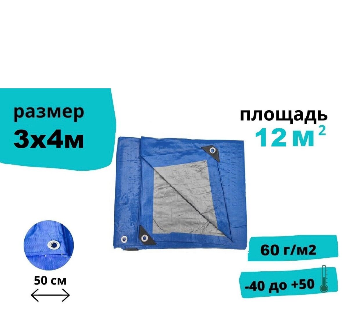 Купить Тент укрывной 3х4 метра, 60 г/м2 с люверсами, защитный, строительный
