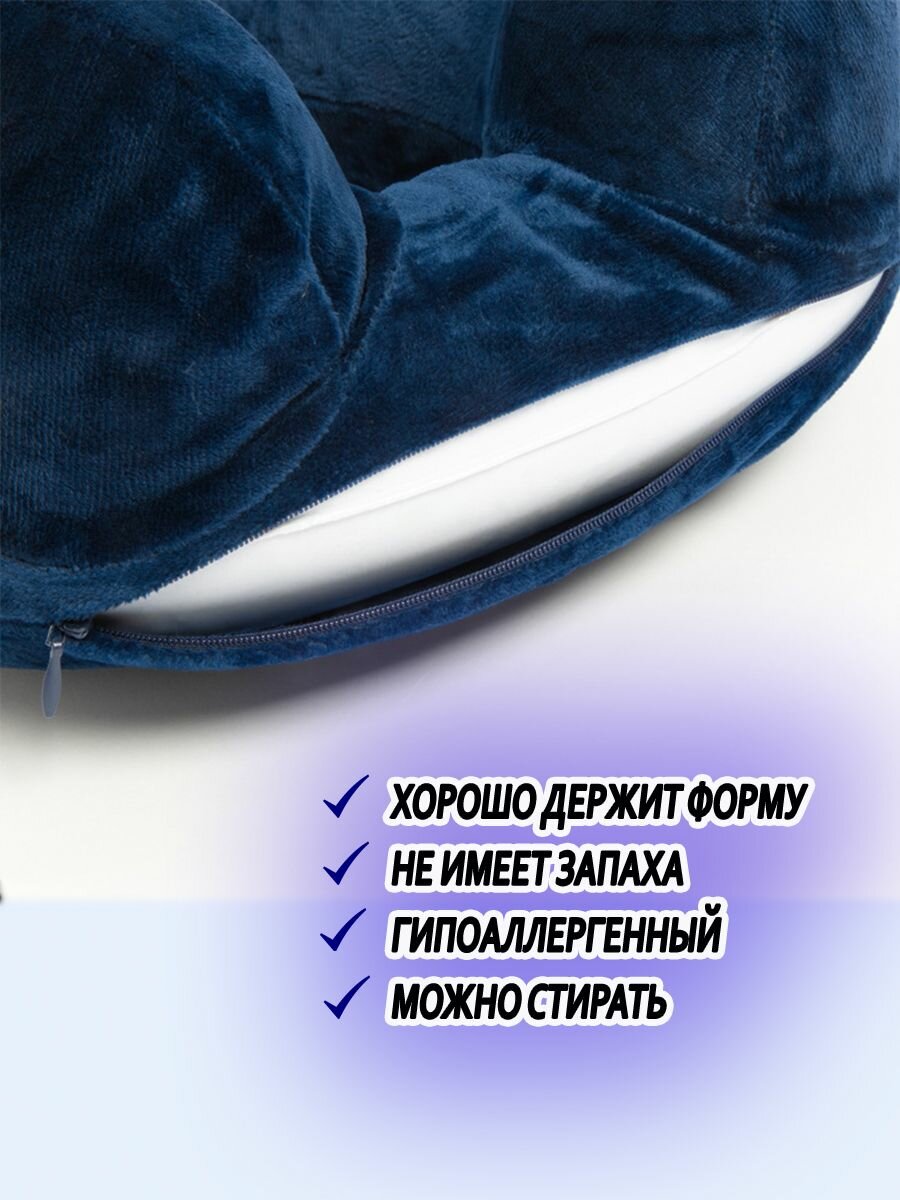 Подушка для шеи с эффектом памяти Velur синяя с карманом