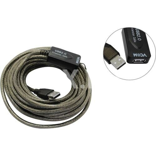 Кабель удлинительный USB2.0 Am-Af 10м VCOM (VUS7049-10M), активный, черный