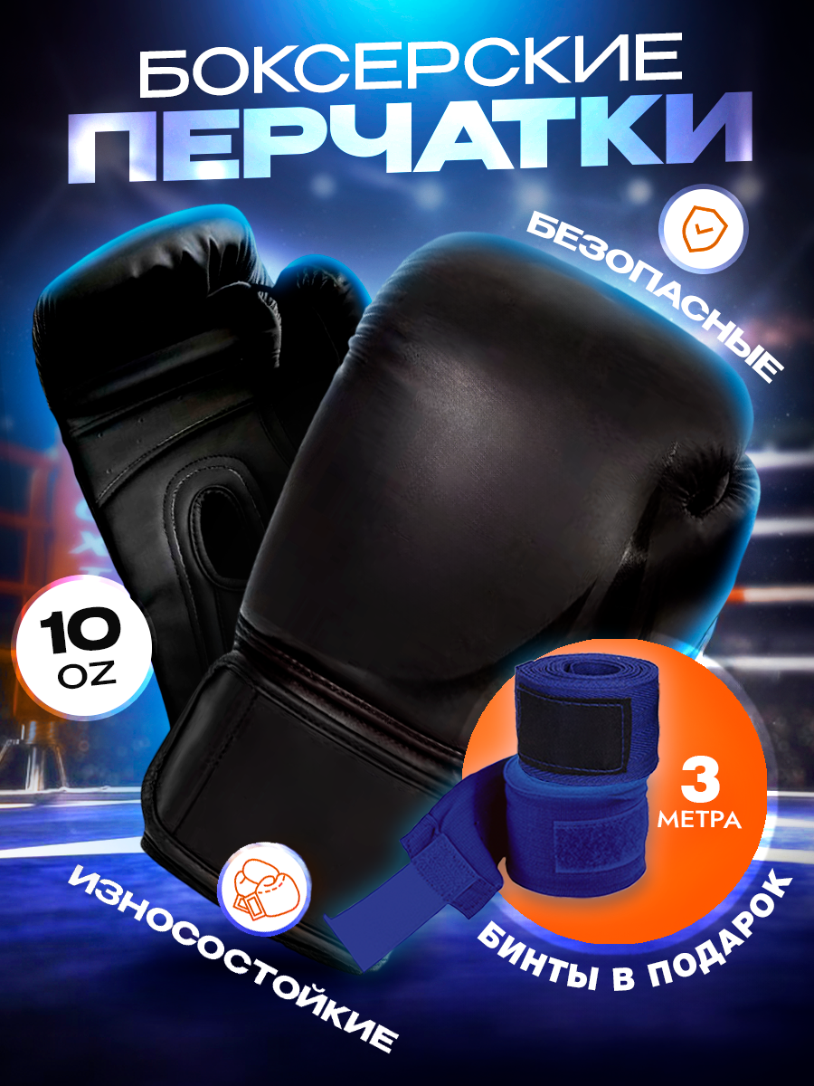 Купить Перчатки для бокса, чёрные, 10 унций