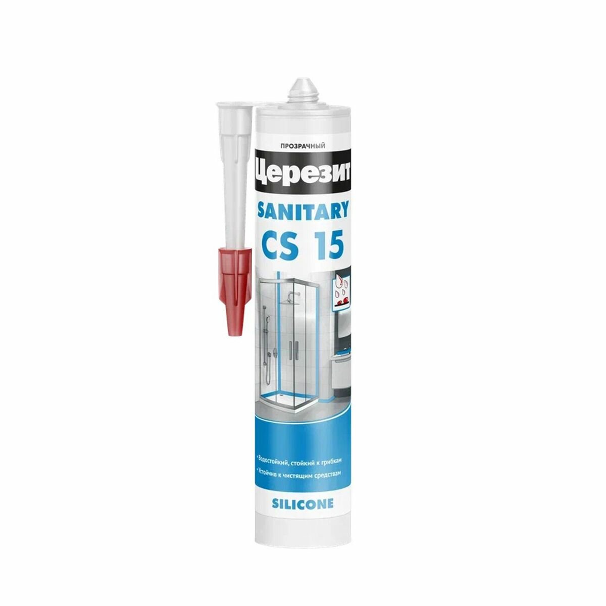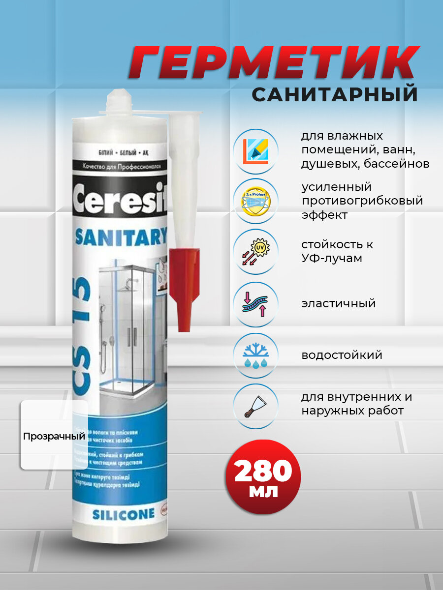 Герметик силиконовый санитарный Церезит (Ceresit) CS 15, 280 мл, прозрачный