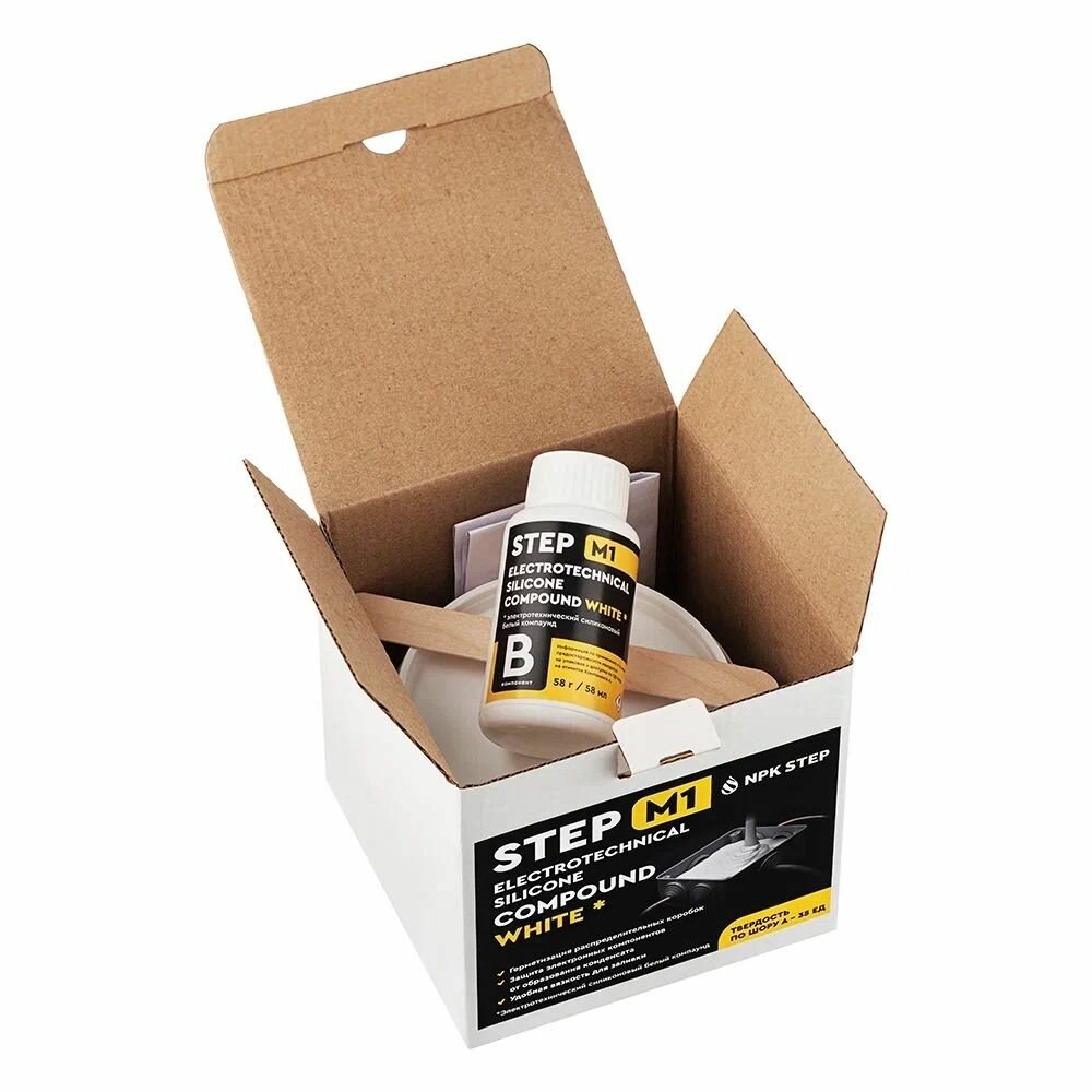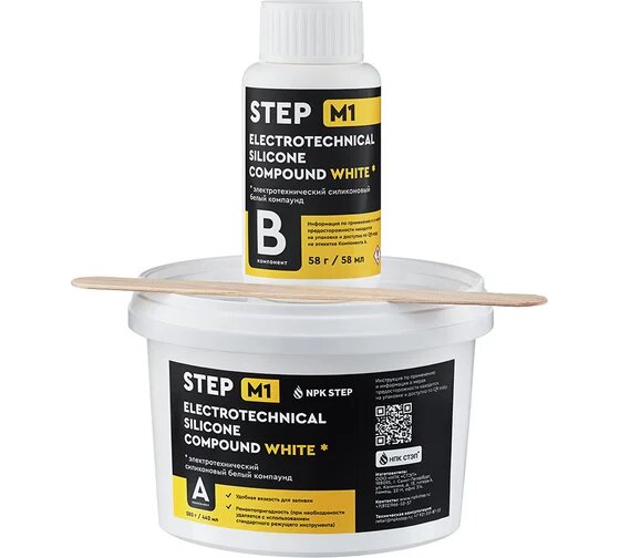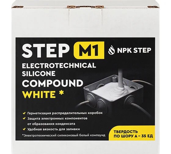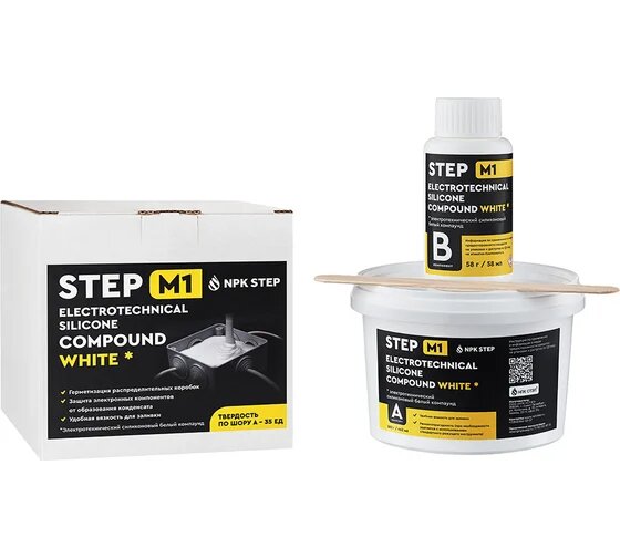 Компаунд силиконовый белый двухкомпонентный заливочный для распределительных коробок STEP-M1 0,5 л интересное: