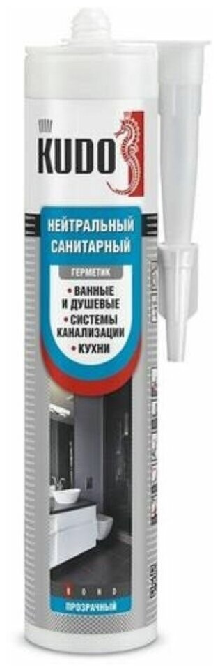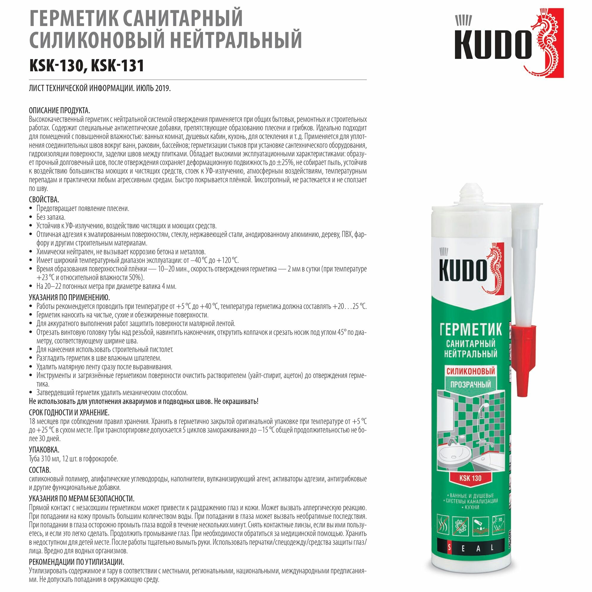 KUDO KSK-130 Герметик силиконовый нейтральный санитарный KUDO KSK-130 прозрачный 280 мл