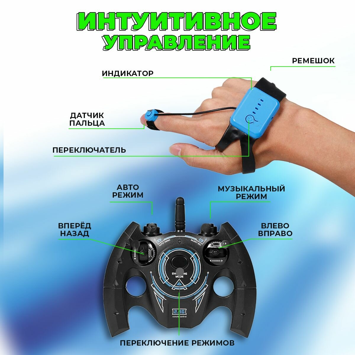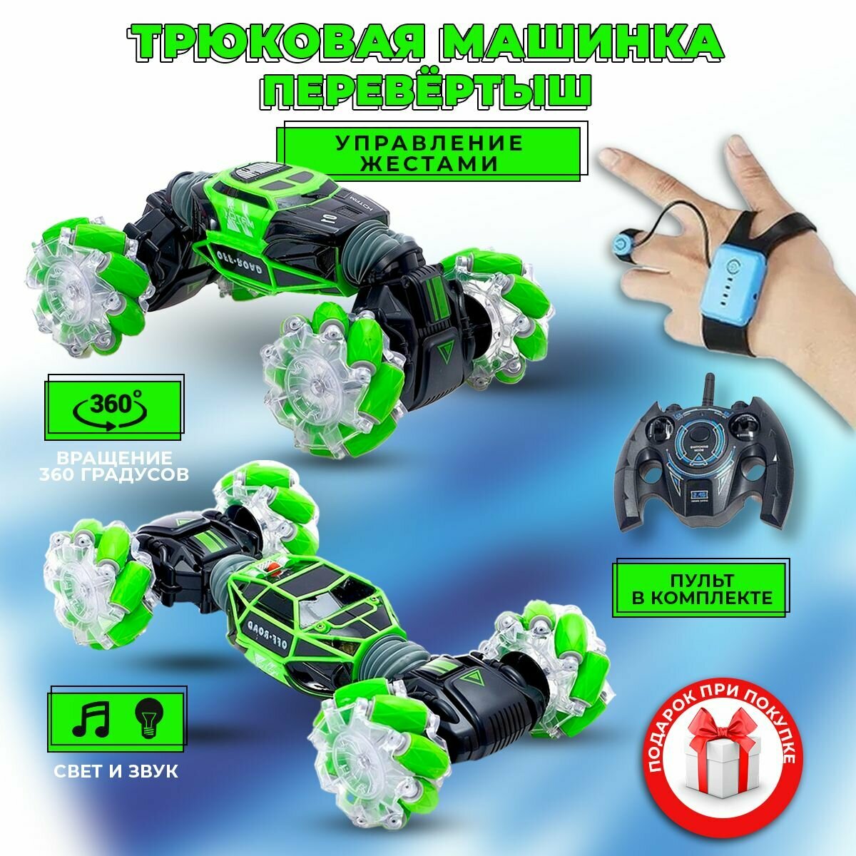 Машинка на пульте управления и жестами, машинка перевертыш на радиоуправлении Skidding Stunt Car 34см, подарок на новый год, день рождение интересное: