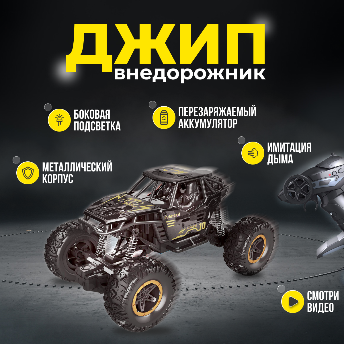 Машинка на радиоуправлении. Внедорожник на аккумуляторе "Имитация выхлопа", черный интересное: