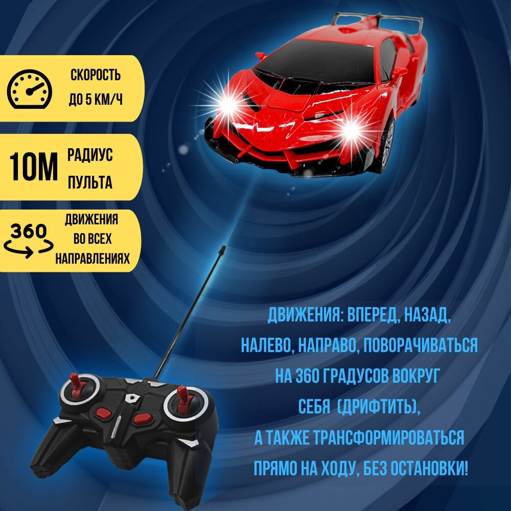 Купить Робот-трансформер спорт кар на батарейках с пультом управления со световыми и звуковыми эффектами, красная гонка