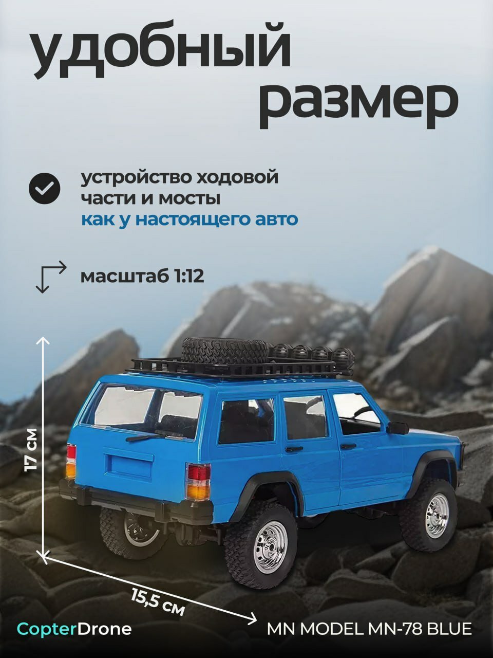 СохранитьРадиоуправляемая машина джип MN MODEL CHEROKEE (серый) RTR 4WD масштаб 1:12 2.4G - MN-78 BLUE интересное: