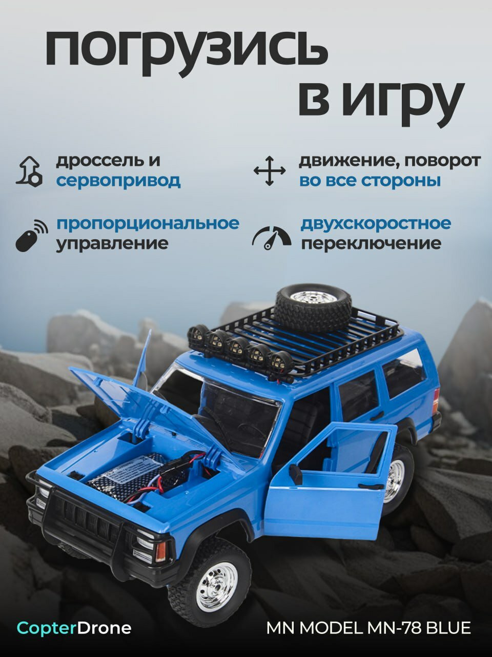 Купить Радиоуправляемая машина джип MN MODEL CHEROKEE (серый) RTR 4WD масштаб 1:12 2.4G - MN-78 BLUE