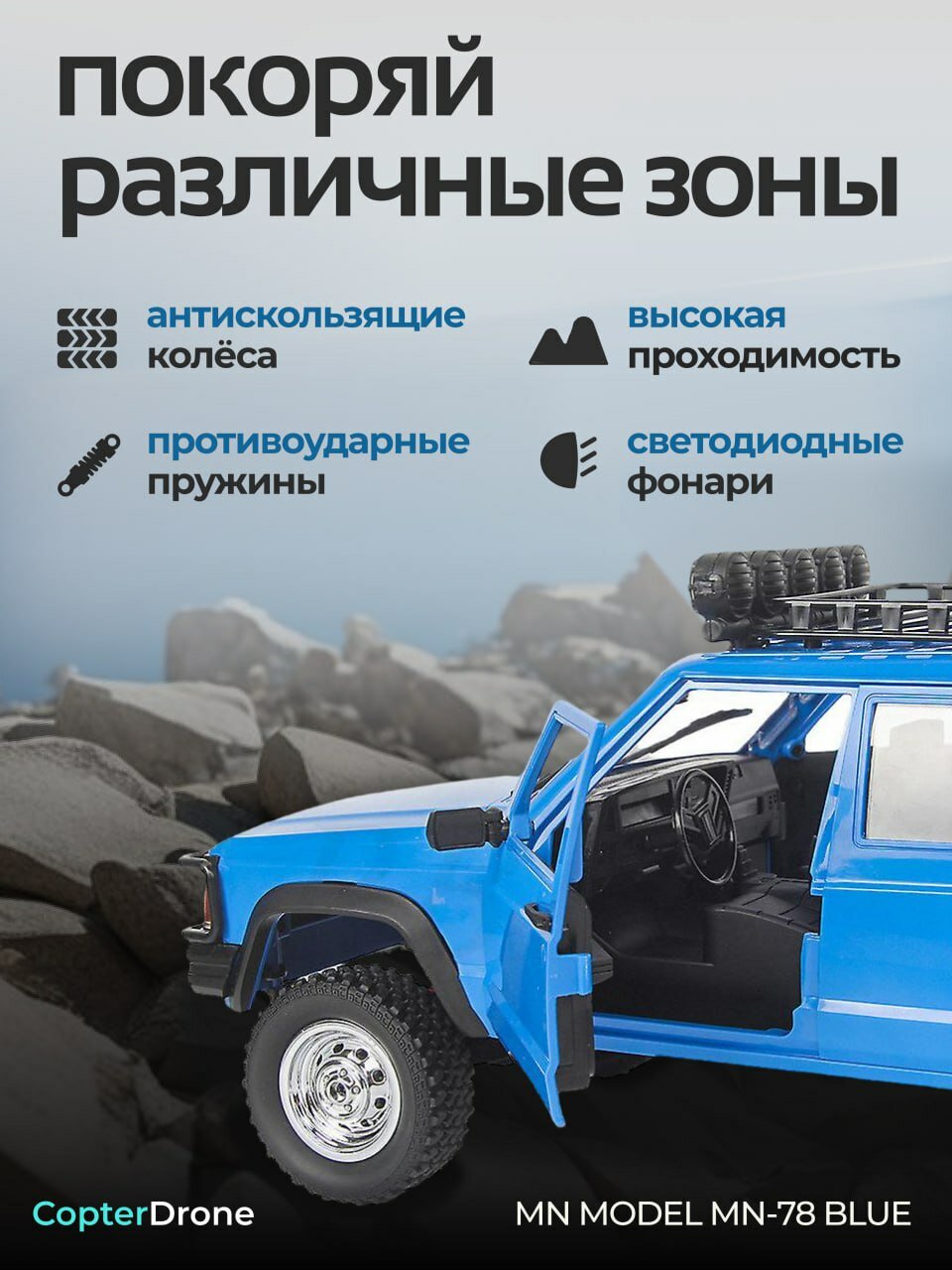 Краулеры и амфибии MN Model Радиоуправляемый внедорожник JEEP Cherokee 4WD 1:12 - MN-78-BLUE