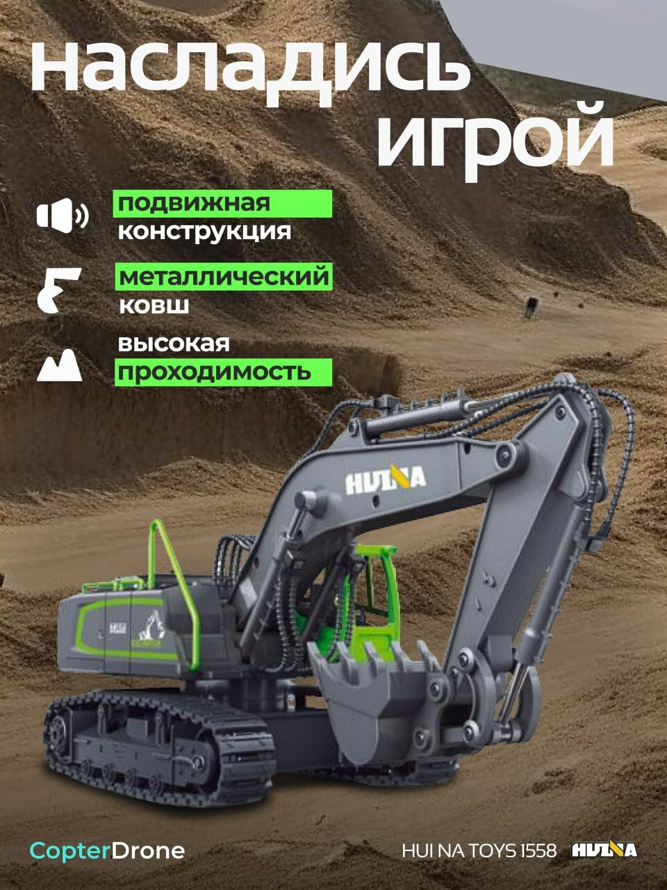 Купить Радиоуправляемый экскаватор HUI NA TOYS масштаб 1:18 2.4G - HN1558-GREEN