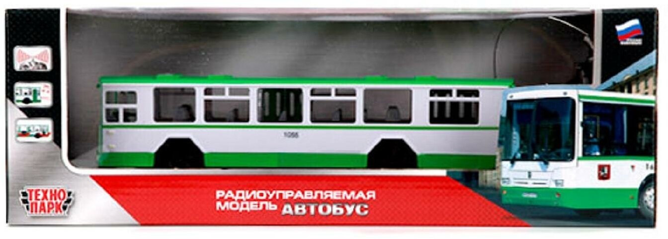 Машинка на радиоуправлении Автобус 24 см, Технопарк, зеленый с белым, свет и звук, 5 батареек ААА (нет в комплекте)
