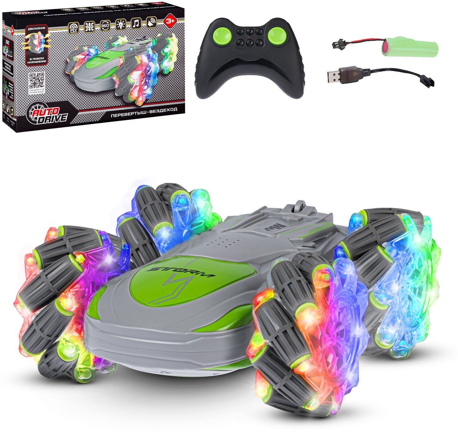 Радиоуправляемая машинка перевертыш-вездеход ТМ Джамбо Тойз, полноприводная, движение вперед/назад/влево/вправо/боковой дрифт, JB0404743 интересное: