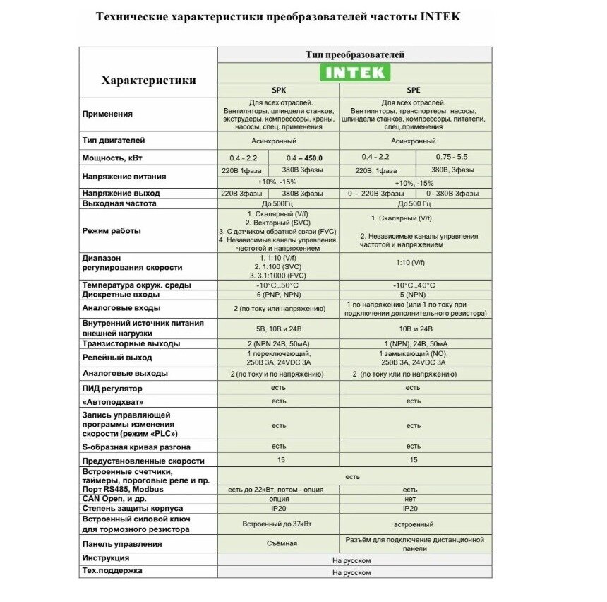 Частотный преобразователь 5,5 кВт 13A INTEK 380В Вход 3 Фазы Выход 3 Фазы SPE552B43G интересное: