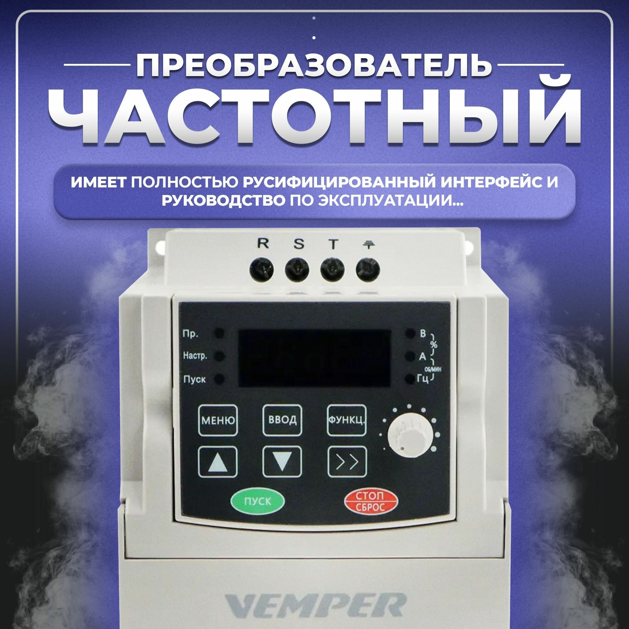 Частотный преобразователь/Частотник VEMPER 0,75 кВт 380B VR100-0075T4B интересное: