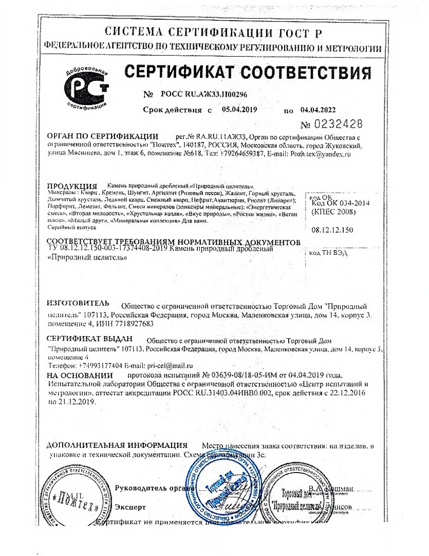 | Дополнительная информация | Натуральные минералы помогут Вам сохранить здоровье! |
