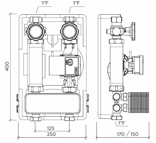 Насосно-смесительный узел VALTEC COMBI.S с насосом 25-4/180 мм межосевое расстояние 200 мм, G1" и сервоприводом, VT.COMBI.S.180M + VRS.254.18.0