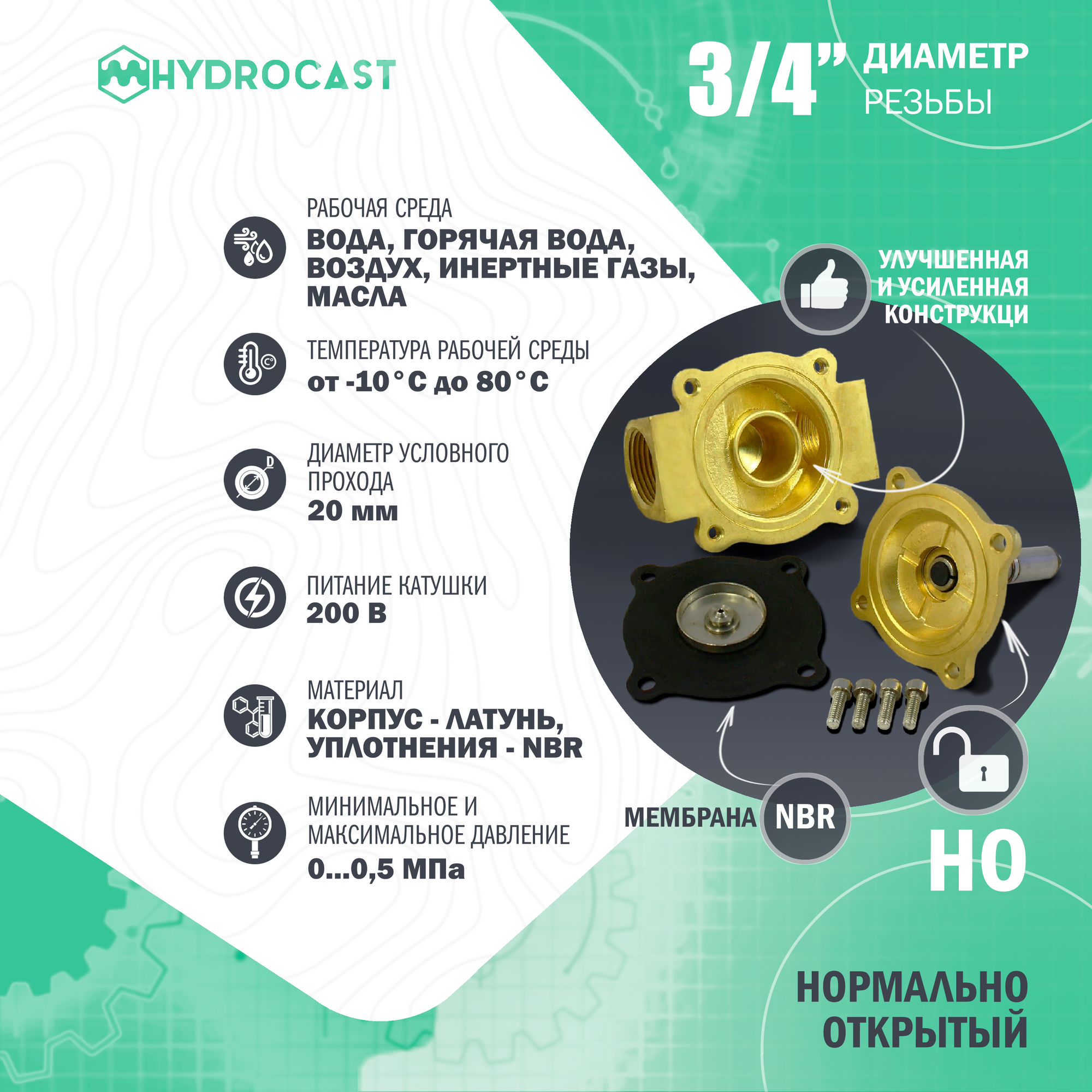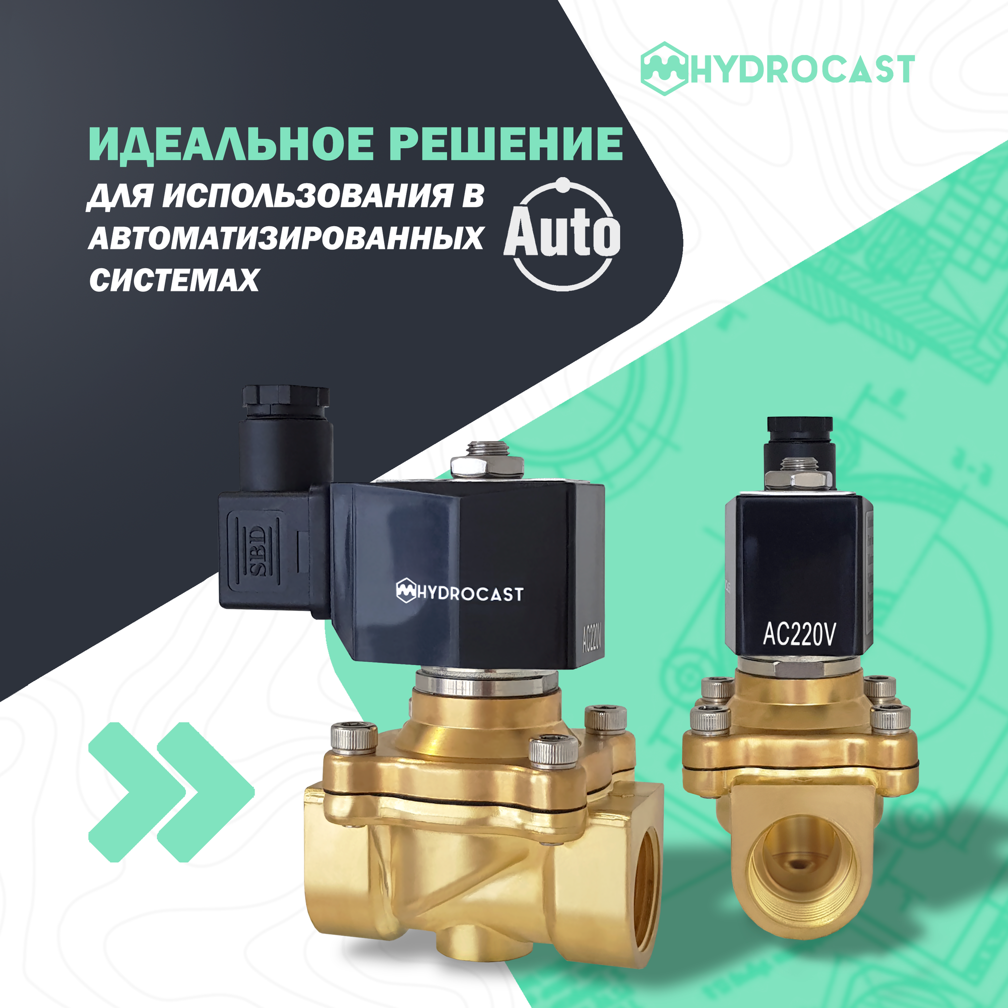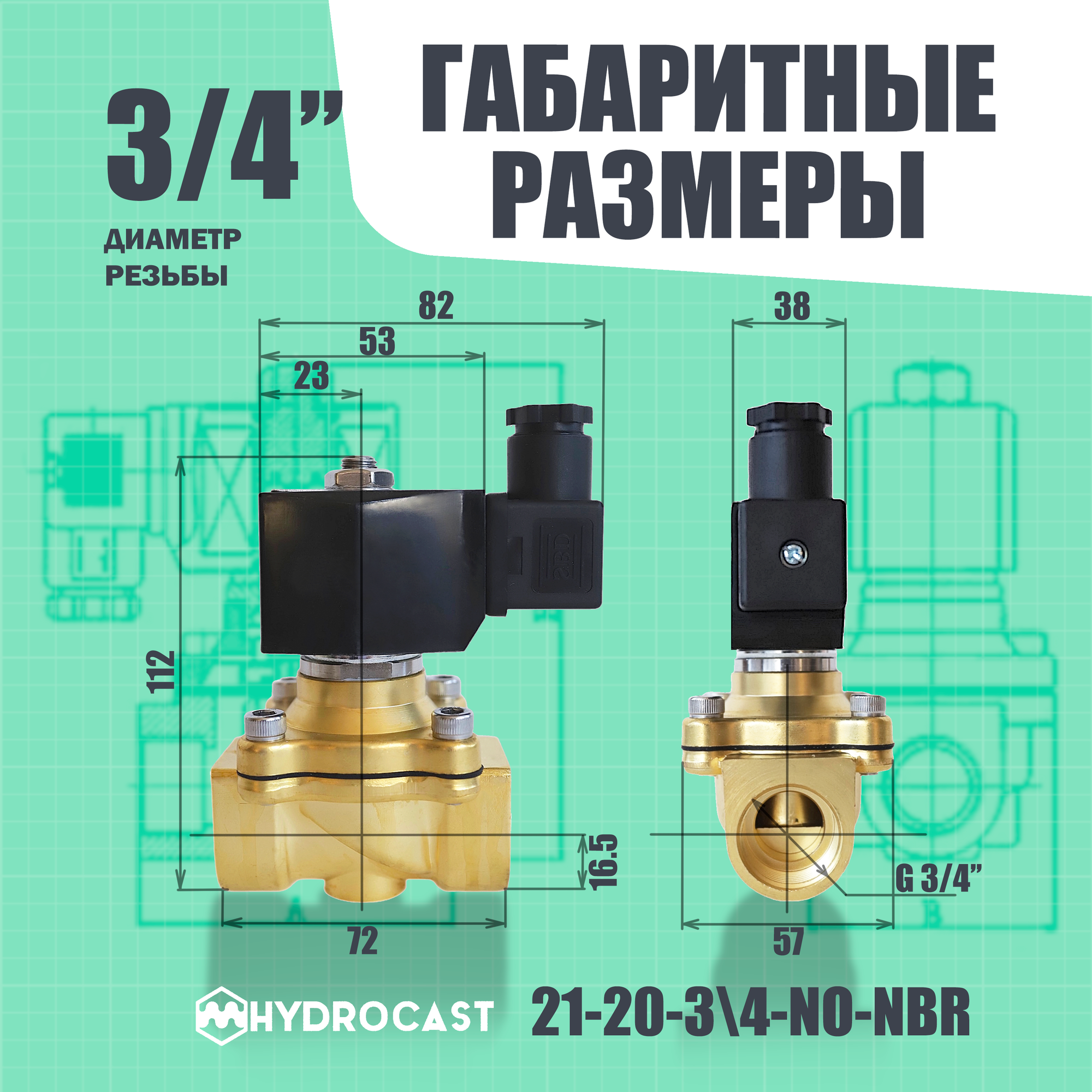 Электромагнитный (соленоидный) клапан для воды Hydrocast DW21-20 G 3/4", 220 В, латунь, NO (открыт при отсут. 220 В), мембрана NBR интересное: