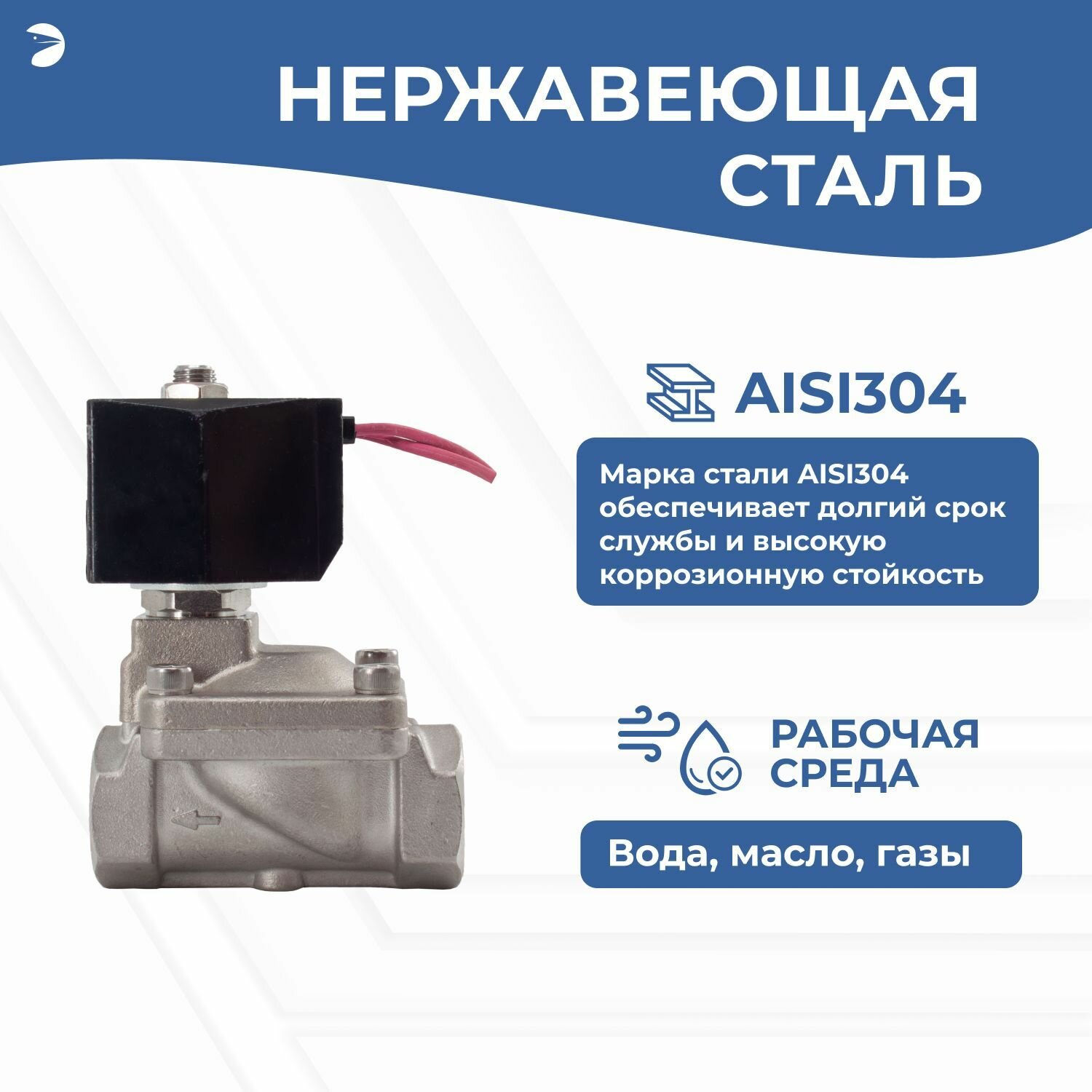 Клапан электромагнитный нержавеющий, прямого действия, нормально открытый, DN20 (3/4"), PN10, 220AC, 2W-200-20KB-220VAC интересное: