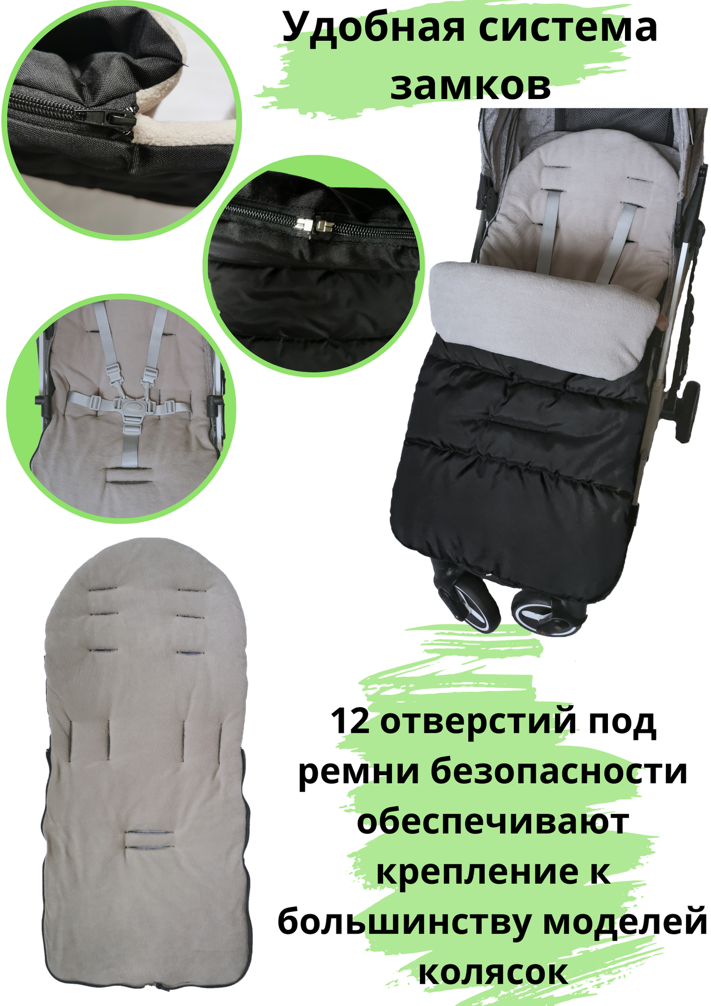 Конверт в коляску для малышей. Черный интересное: