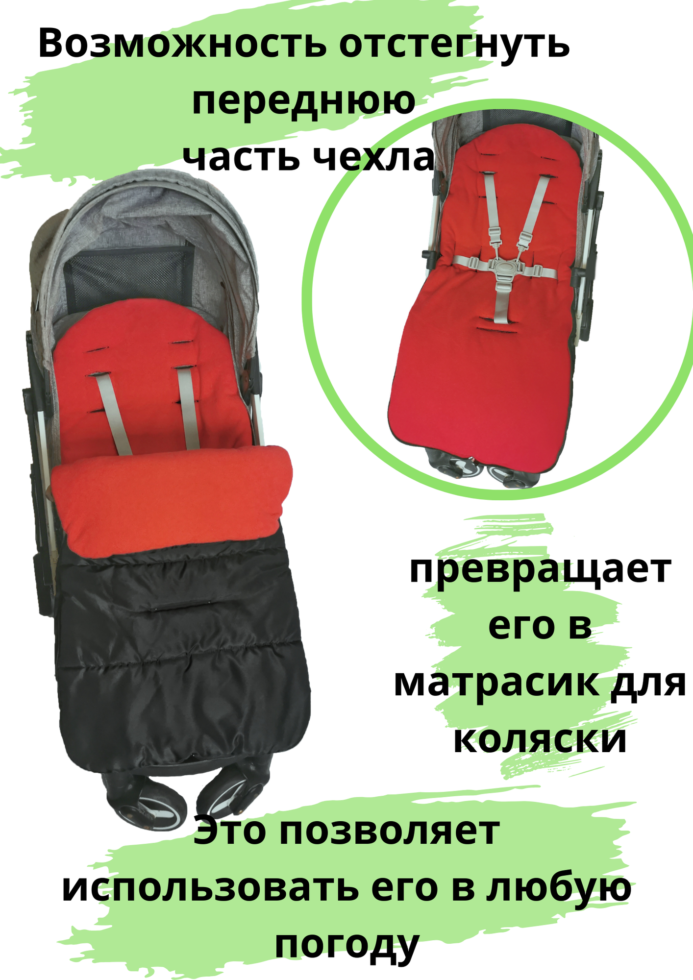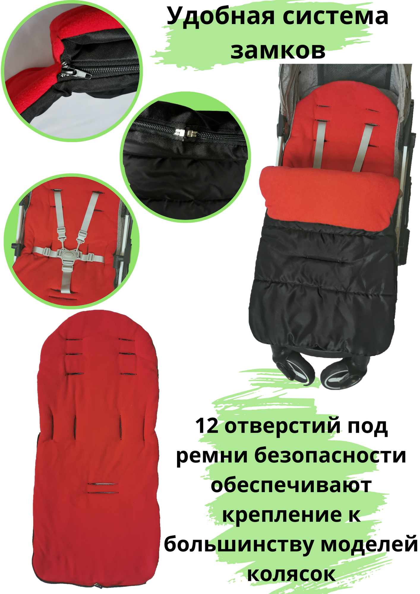 Конверт в коляску для малышей. Красный интересное: