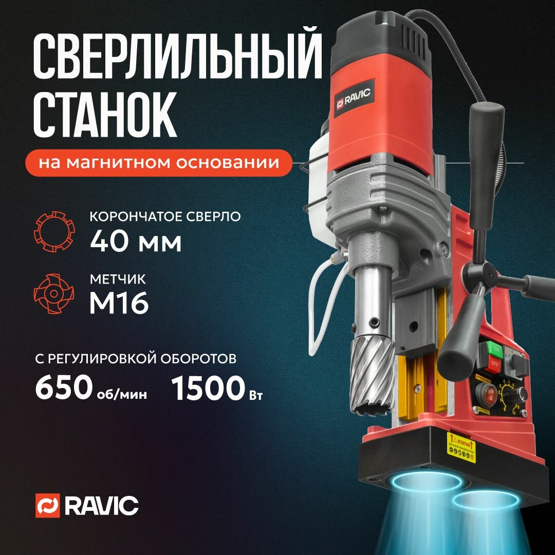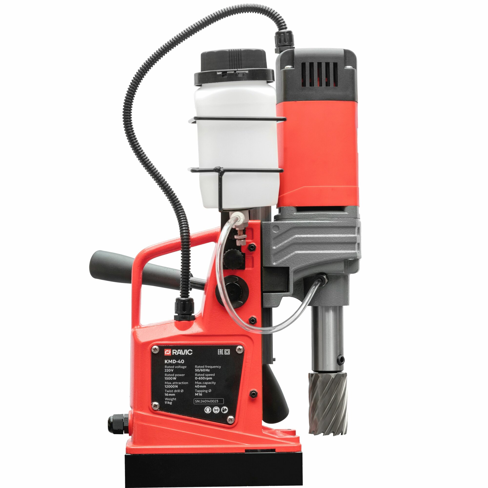 Купить Магнитный сверлильный станок Ravic KMD-40. 1500 Вт, 650 об/мин, диаметр спиральных свёрл 16 мм, корончатых сверл 40 мм, нарезание резьбы до М16