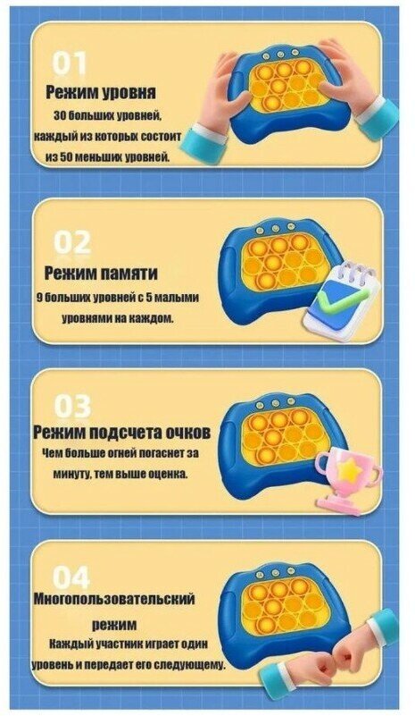 Электронный поп ит / Игрушка антисресс pop it / Игровая консоль с пупырками на русском языке, голубой