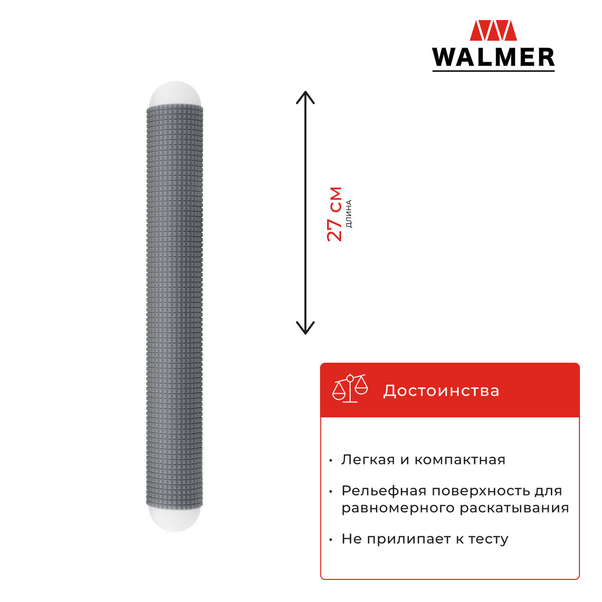 Скалка для теста рельефная Walmer Home Chef, 27 см, цвет серый интересное:
