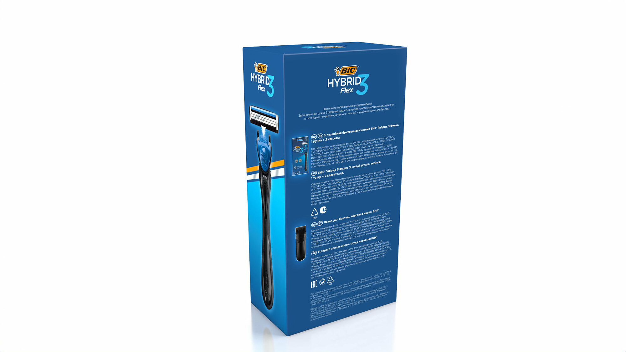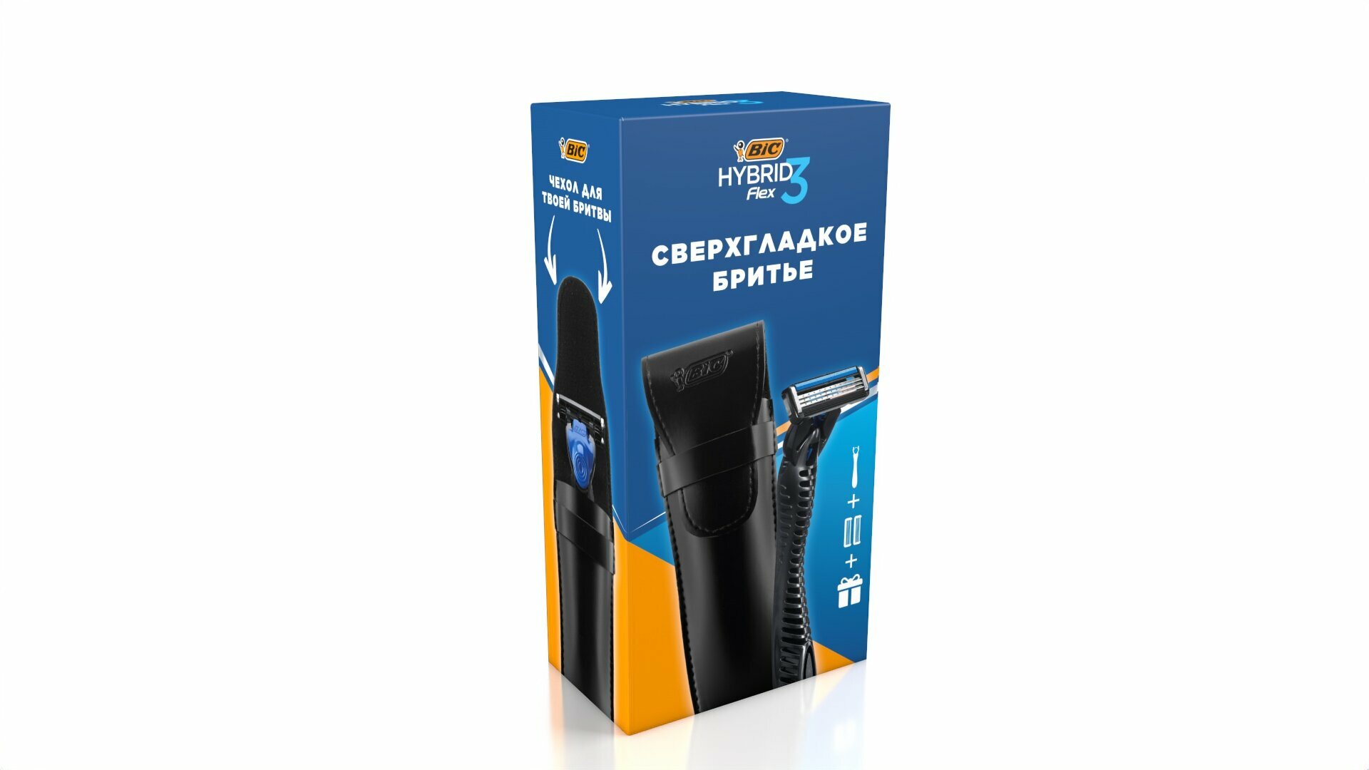Набор подарочный 4 предмета BIC FLEX 3 HYBRID станок, 2 кассеты три лезвия, чехол