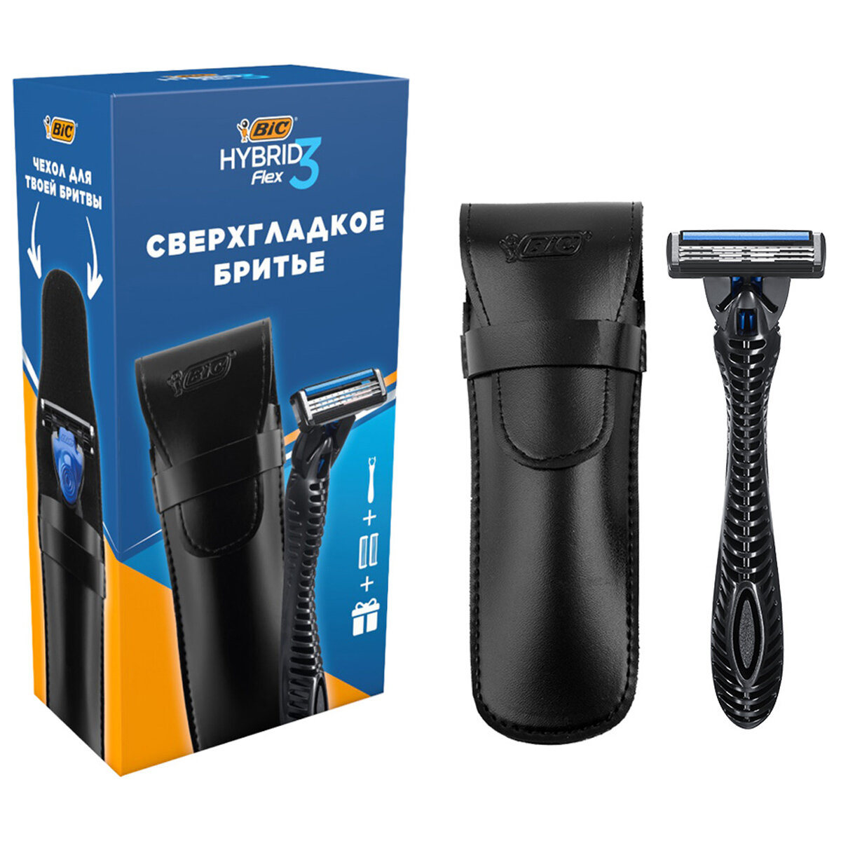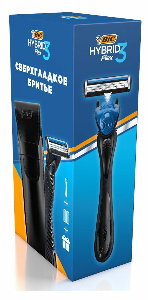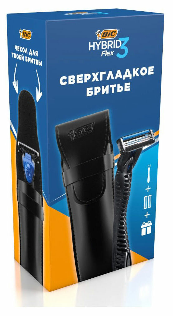 Мужская бритва BIC Hybrid 3 Flex 2 сменные кассеты для бритья + чехол для бритвы в подарок Набор БИК