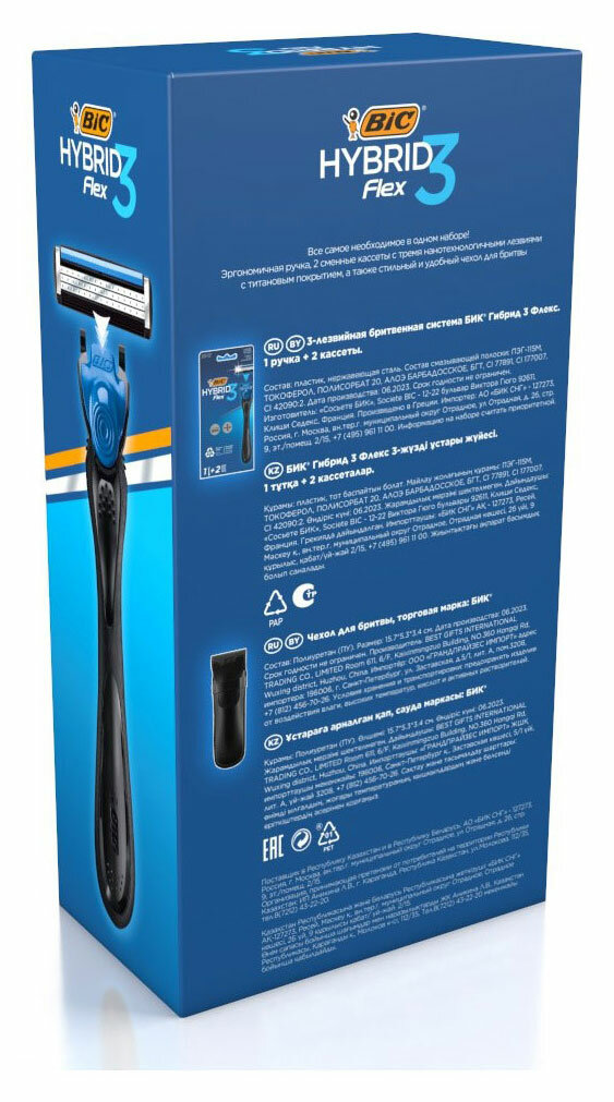 под.набор_bic_м. ст. д/бритья + 2 кассеты hybrid 3 flex + чехол 8G6001 интересное: