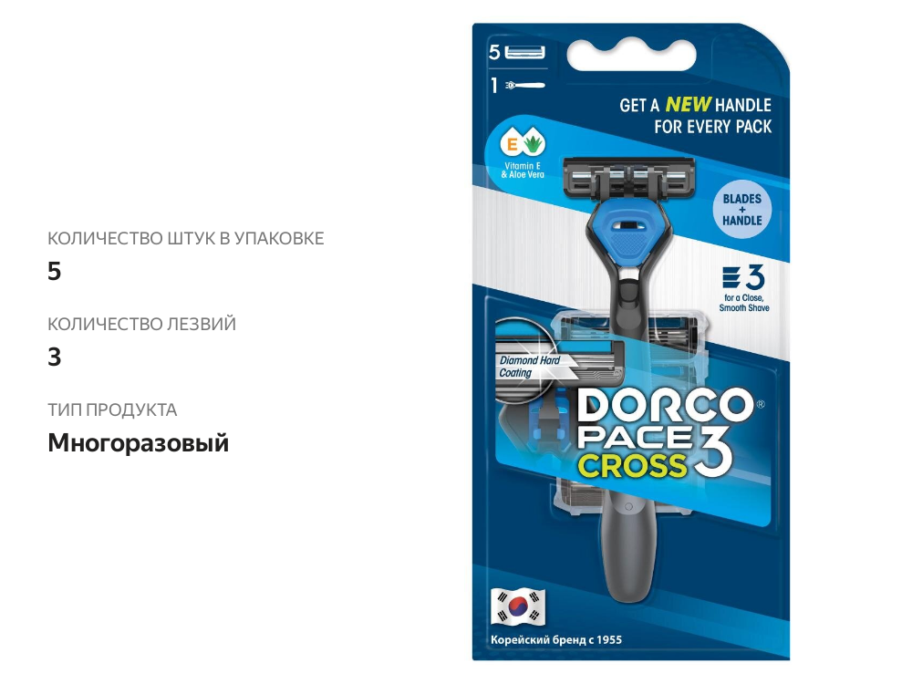 Станок для бритья Dorco Pace 3 Cross 5 сменных кассет интересное:
