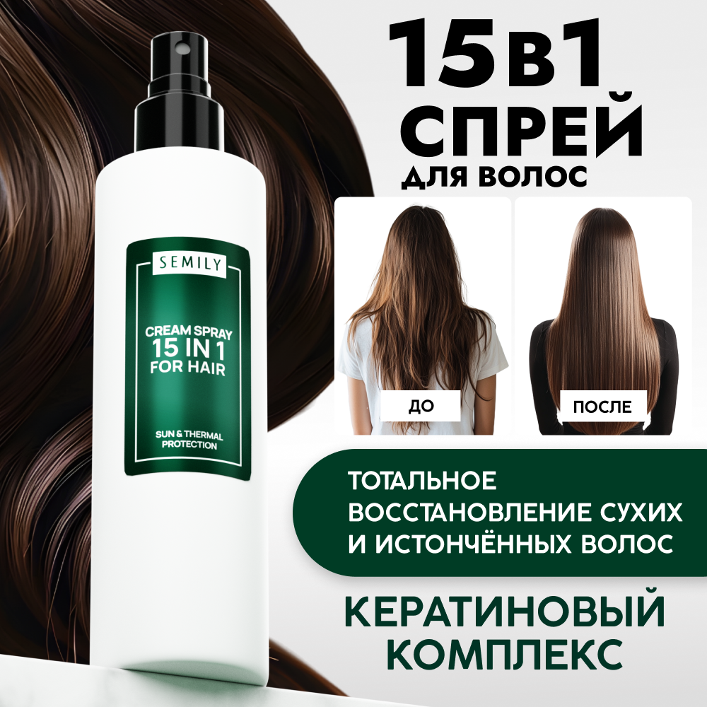 Спрей для волос 15 в 1 Semily 200мл термозащитный интересное: