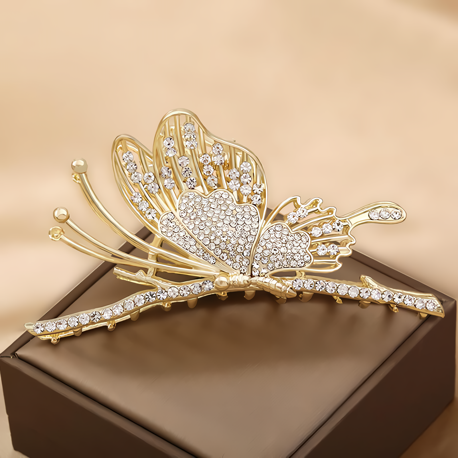 Крабик для волос со стразами аксессуар в виде бабочки металлический зажим интересное: