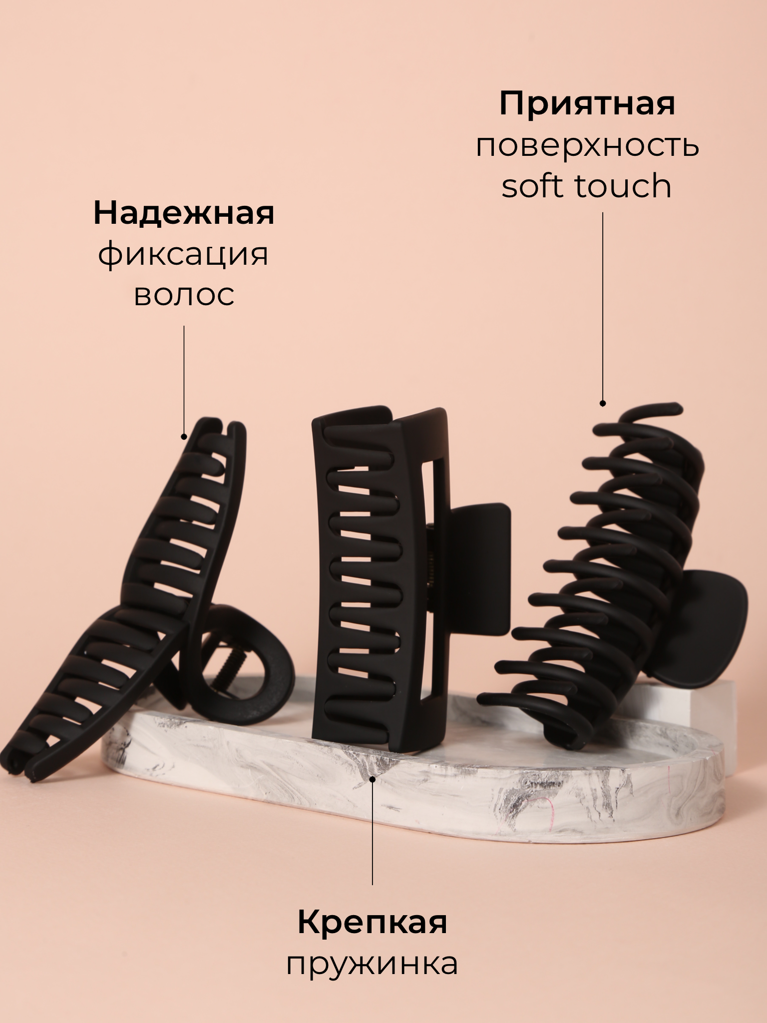 Крабик для волос набор 3 шт черные soft-touch интересное: