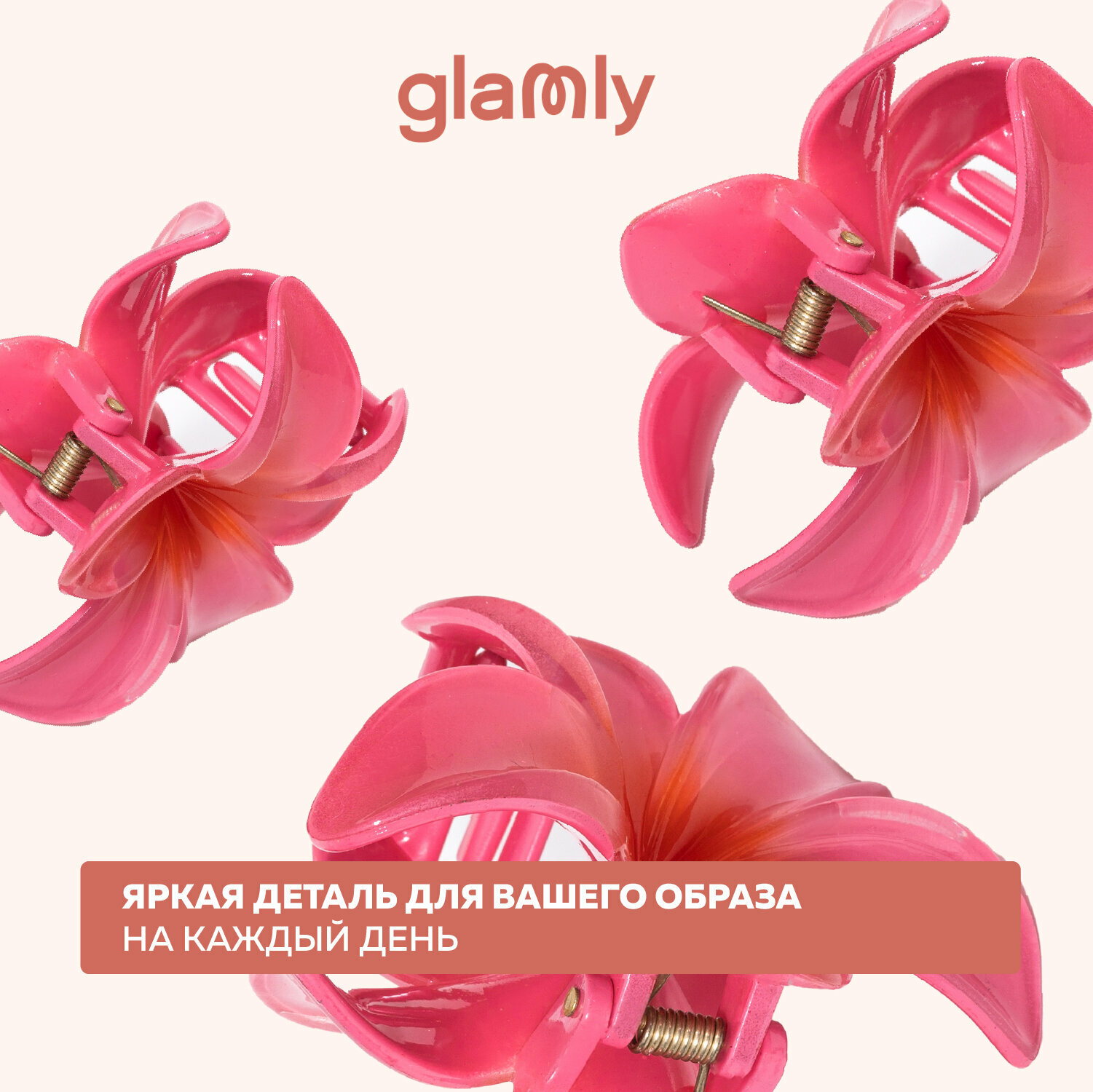 Крабик для волос glanly, большой, персиковый, Plumeria