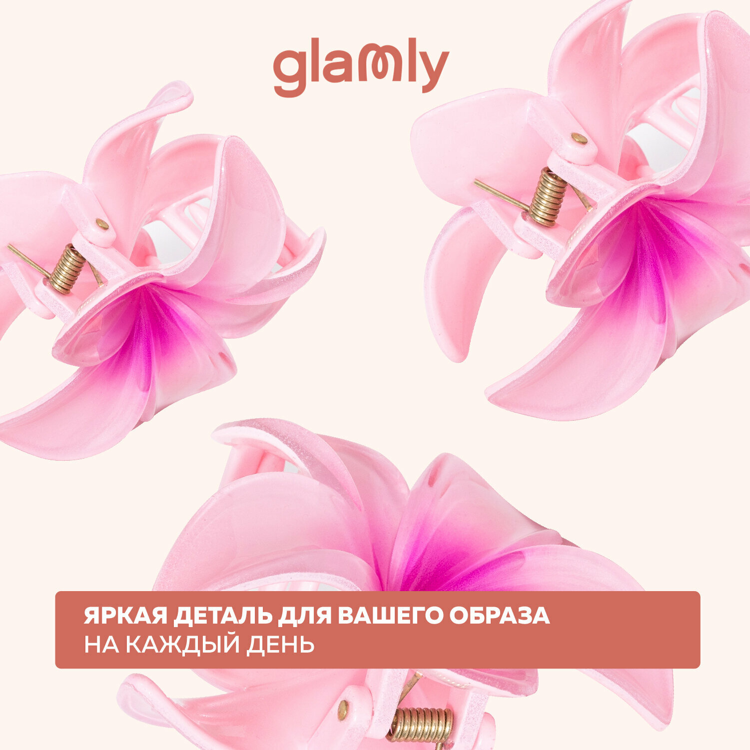 Крабик для волос glanly, большой, персиковый, Plumeria