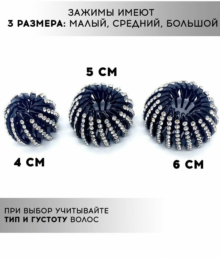 Заколка на пучок хвост круглая со стразами большой размер интересное: