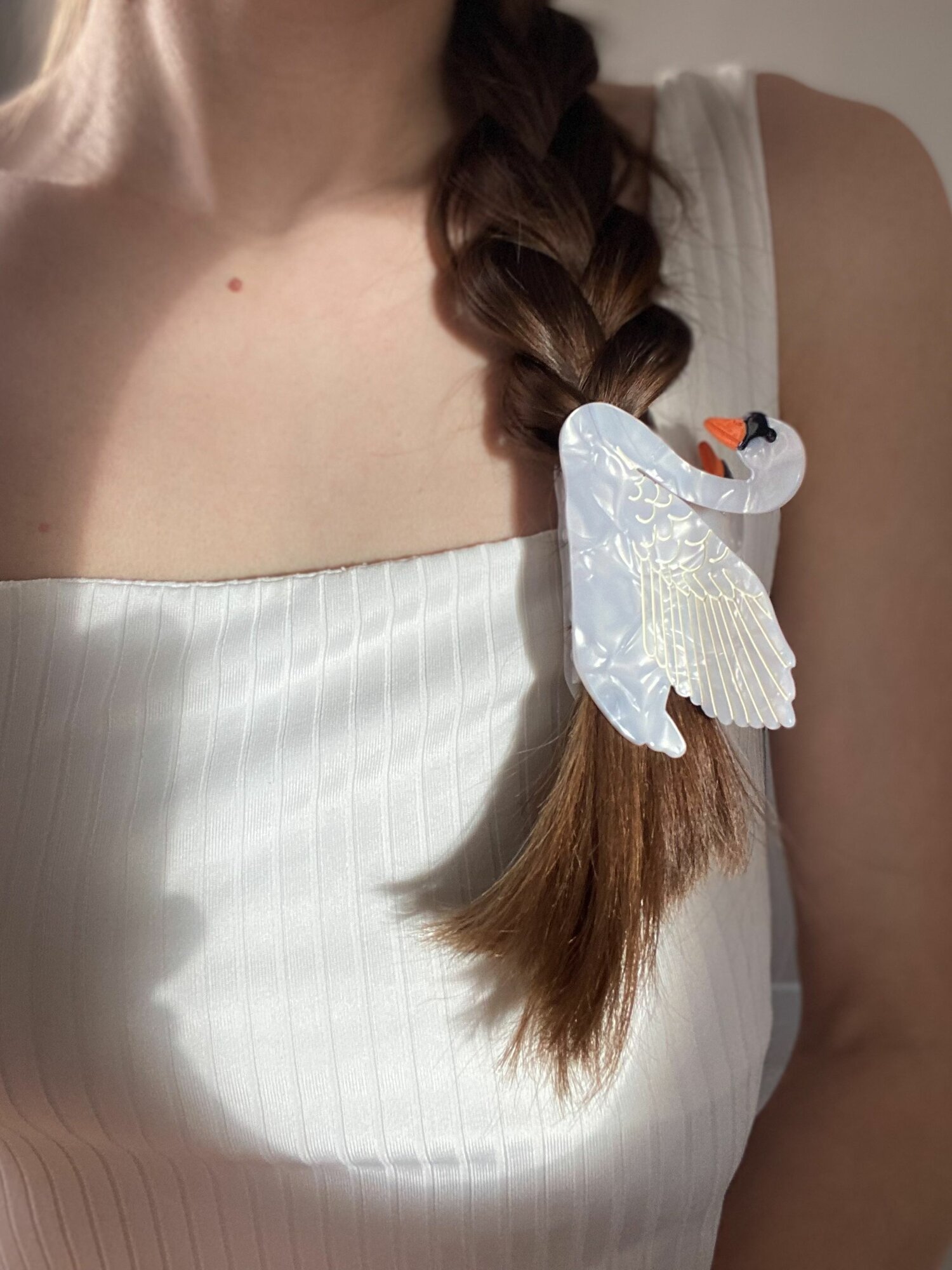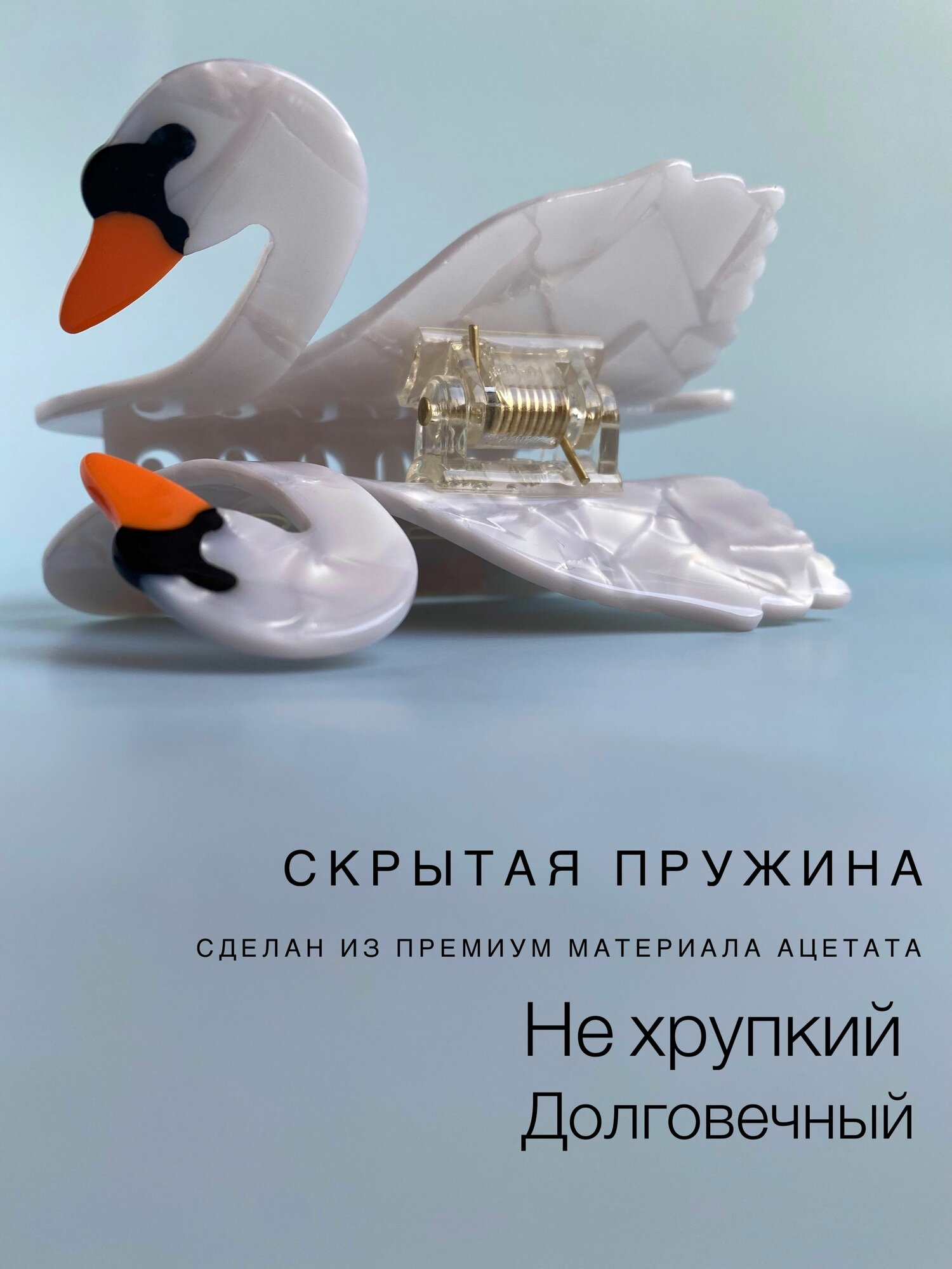 Купить Заколка краб Лебедь, серия Птицы от Accent You, из ацетата, 1 шт
