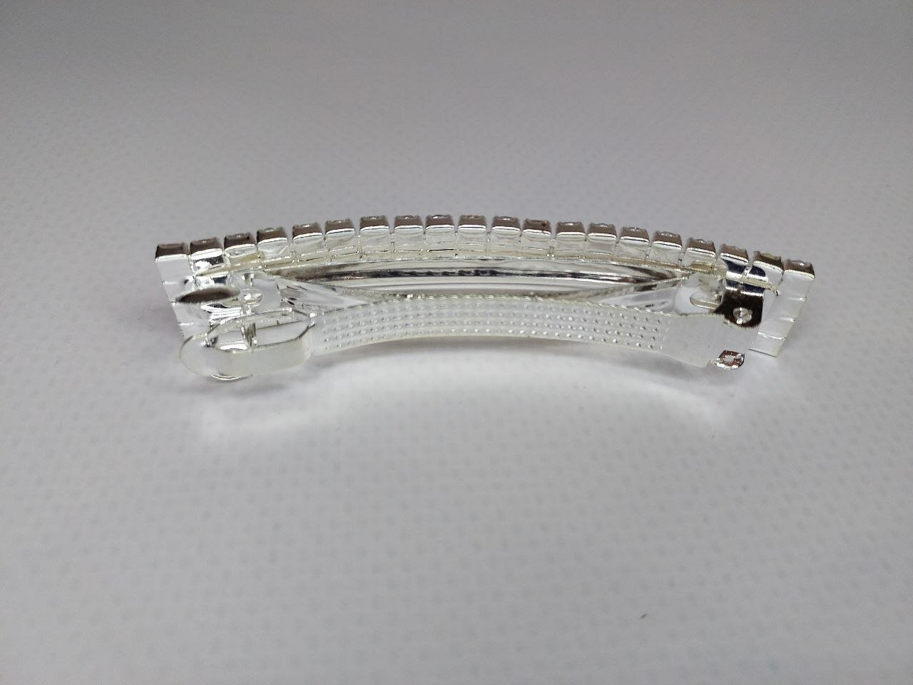 Французская весенняя заколка-автомат для волос. Со стразами в два ряда . Цвет серебро.