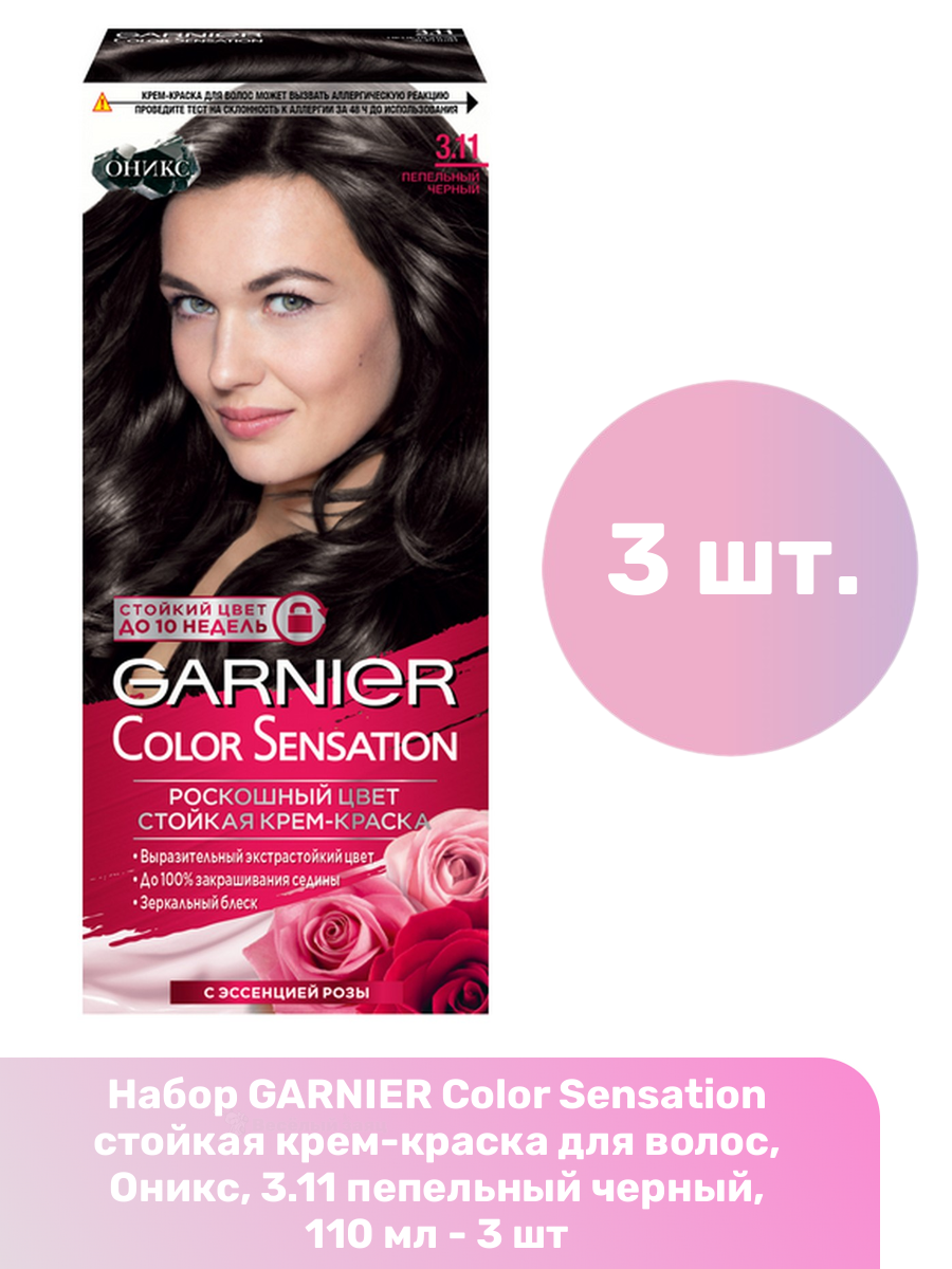 Купить GARNIER Color Sensation стойкая крем-краска для волос, Оникс, 3.11 пепельный черный, 110 мл - 3 шт