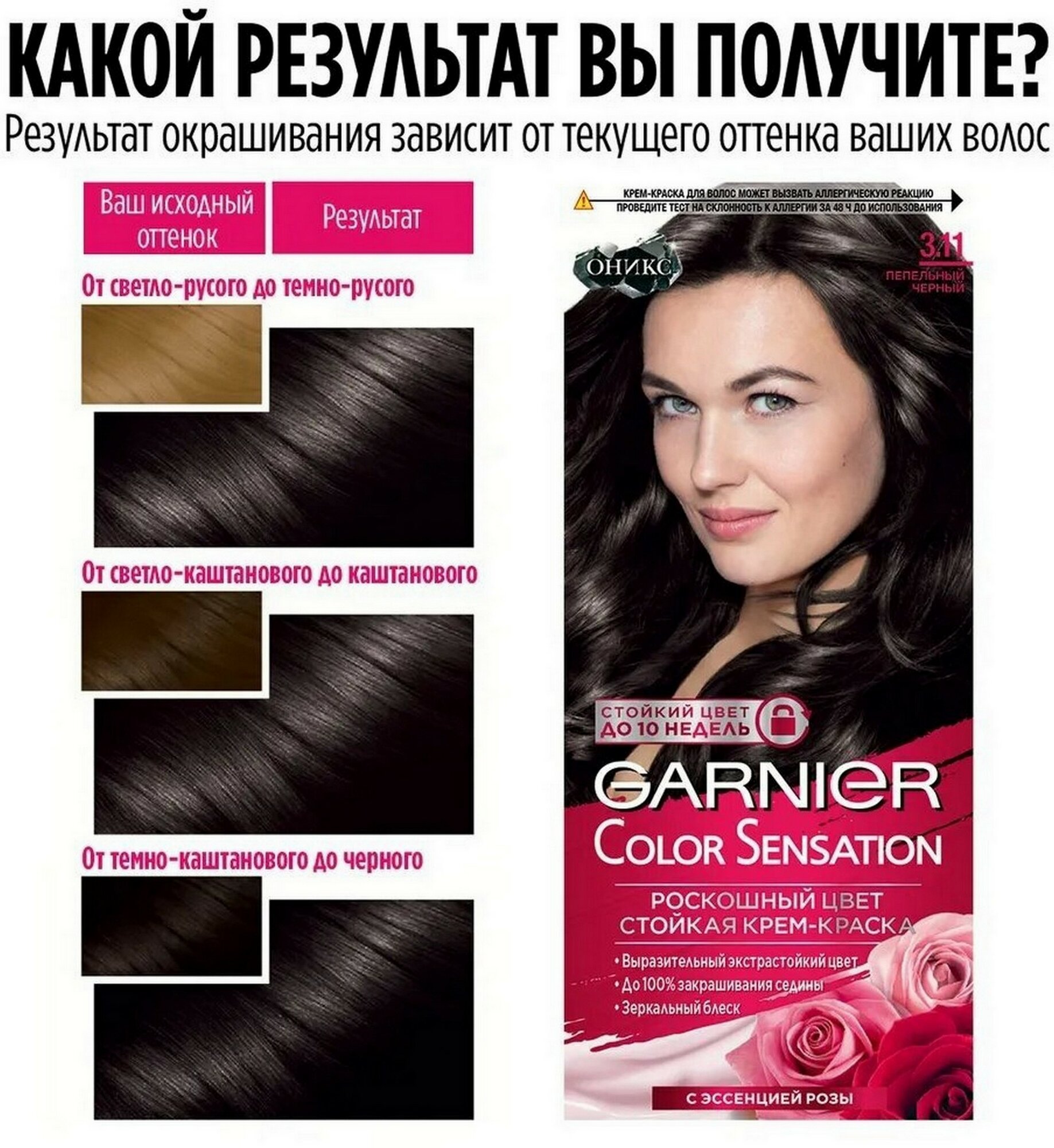 СохранитьGARNIER Color Sensation стойкая крем-краска для волос, Оникс, 3.11 пепельный черный, 110 мл - 3 шт интересное: