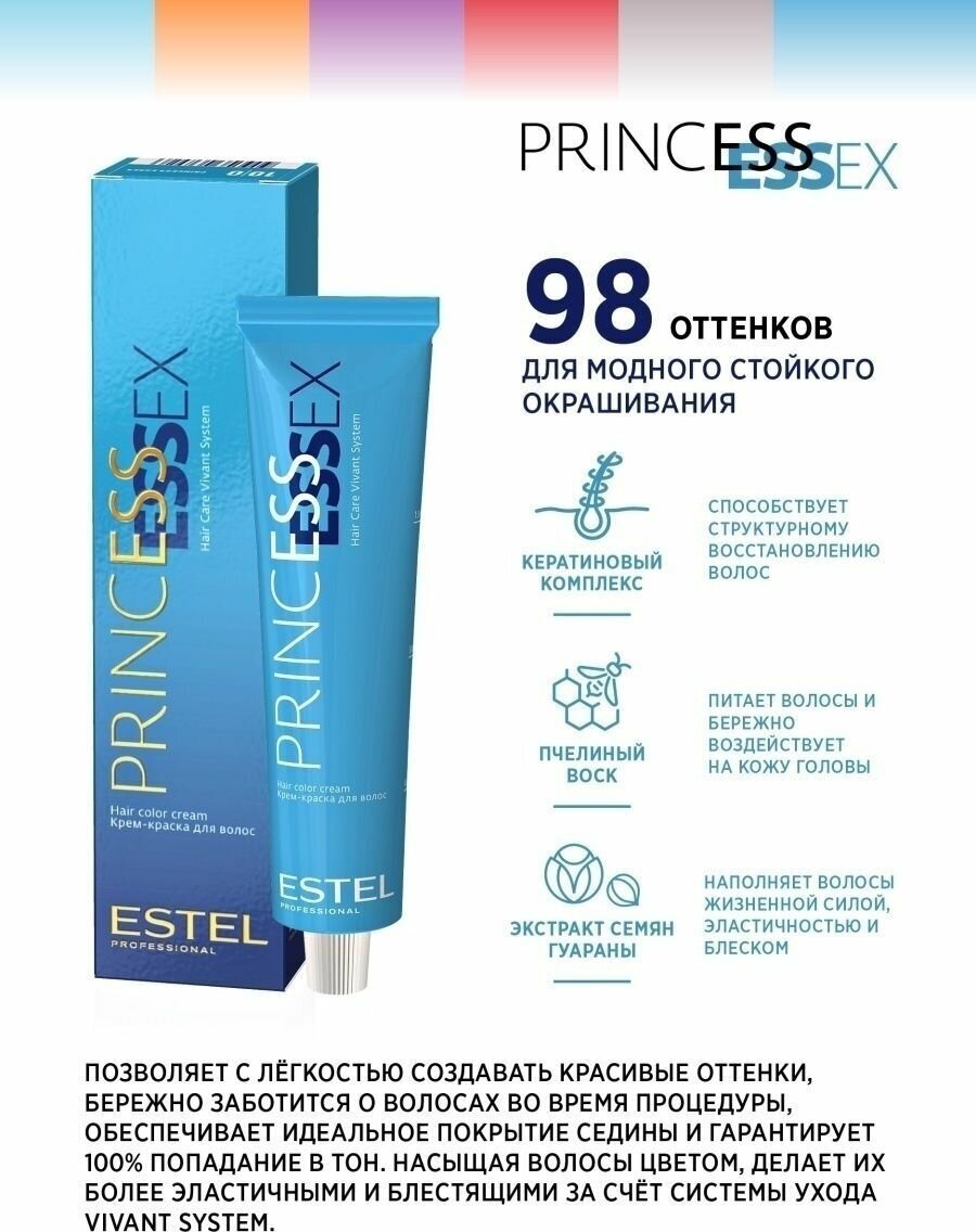 ESTEL PROFESSIONAL Крем-краска PRINCESS ESSEX для окрашивания волос, CHROME, 7/16 Русый пепельно-фиолетовый, 60 мл