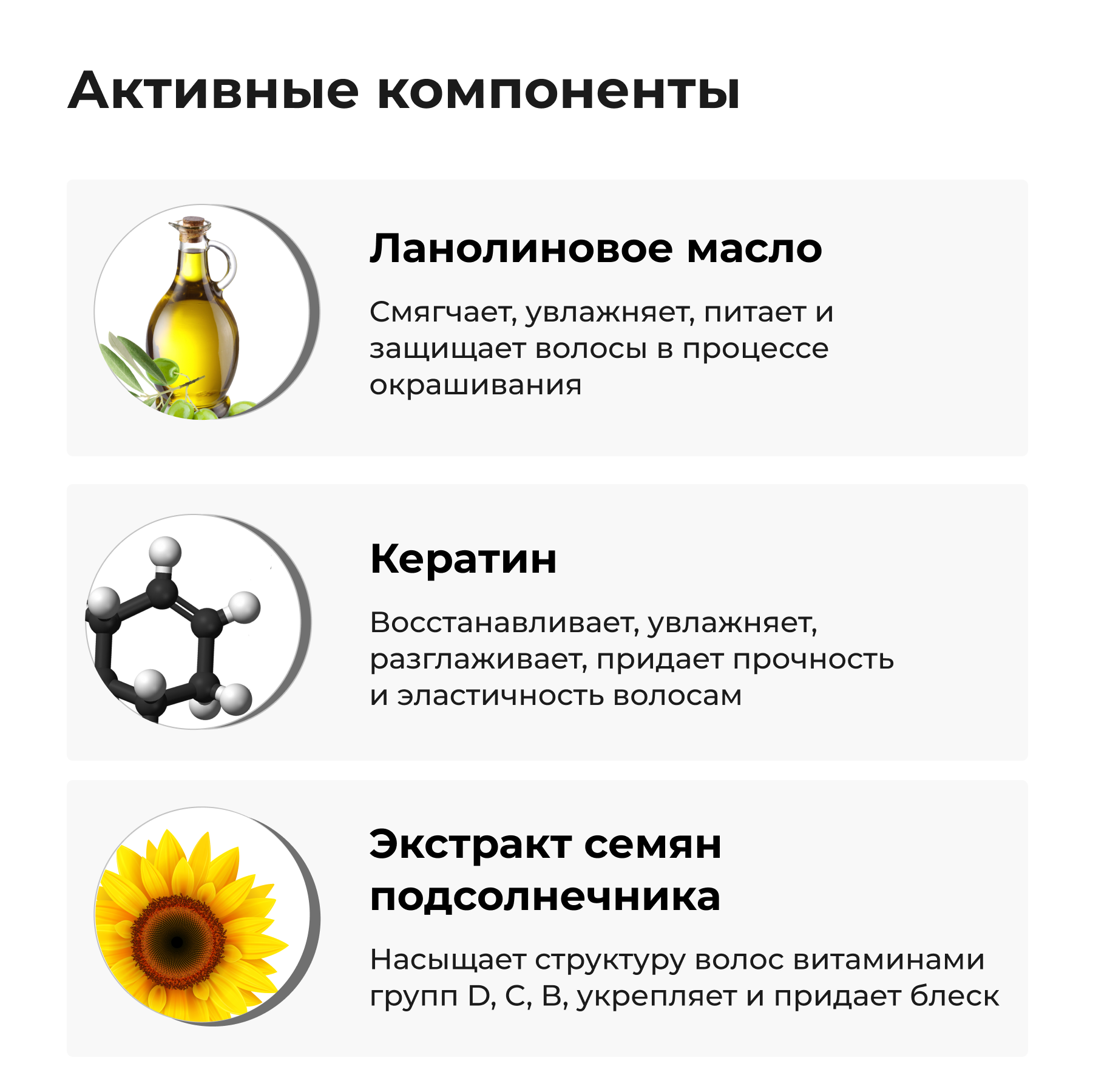 | Состав | Вода, перекись водорода, ланолин, кератин, аргановое масло, экстракт семян подсолнечника |