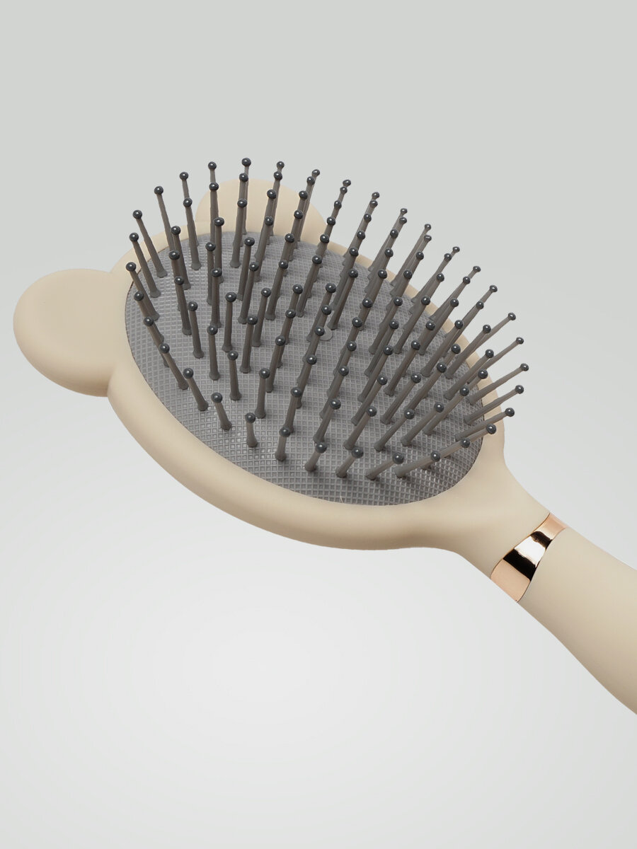 Расчёска массажная "Бежевая Мишка", с ушками и очистителем, компактная